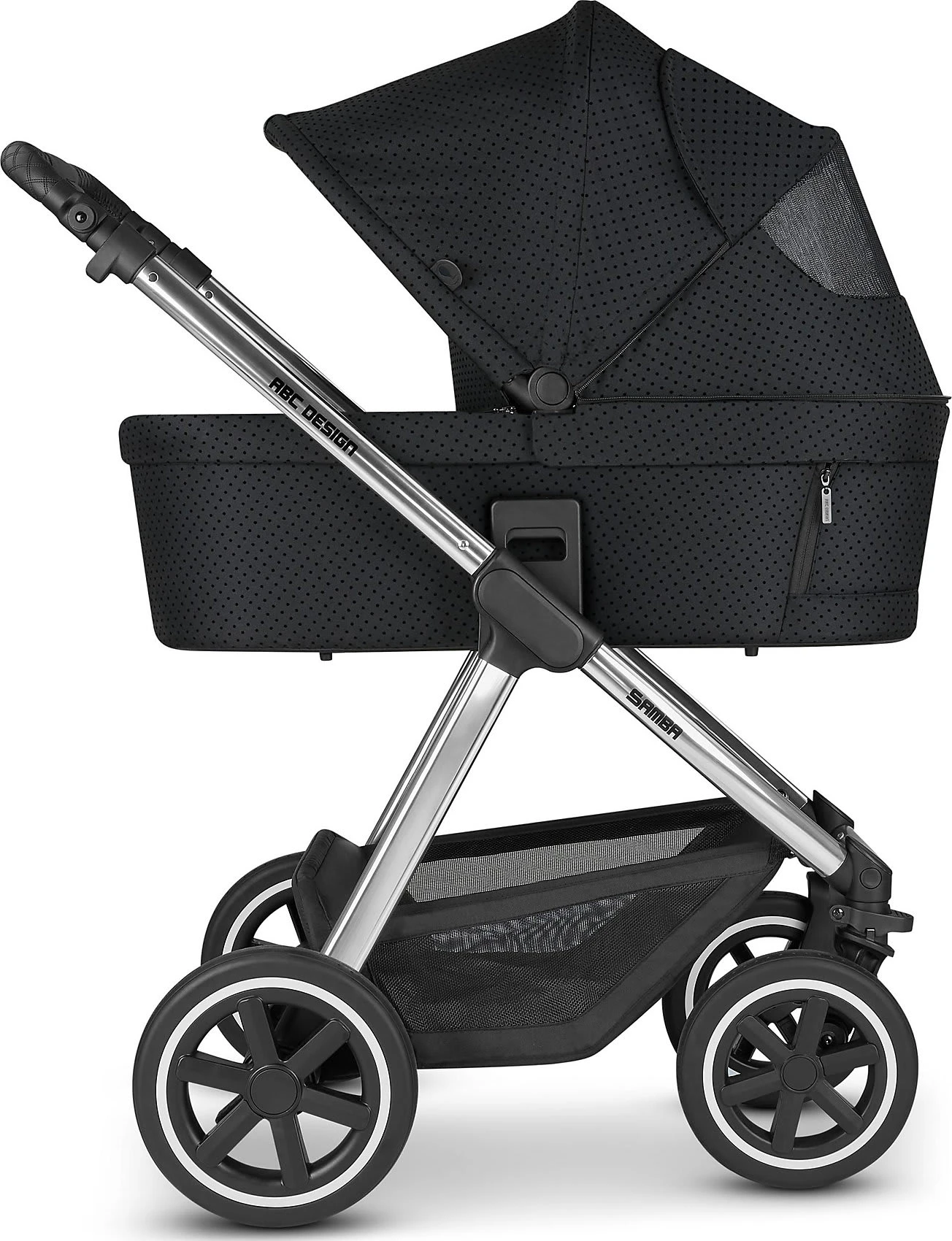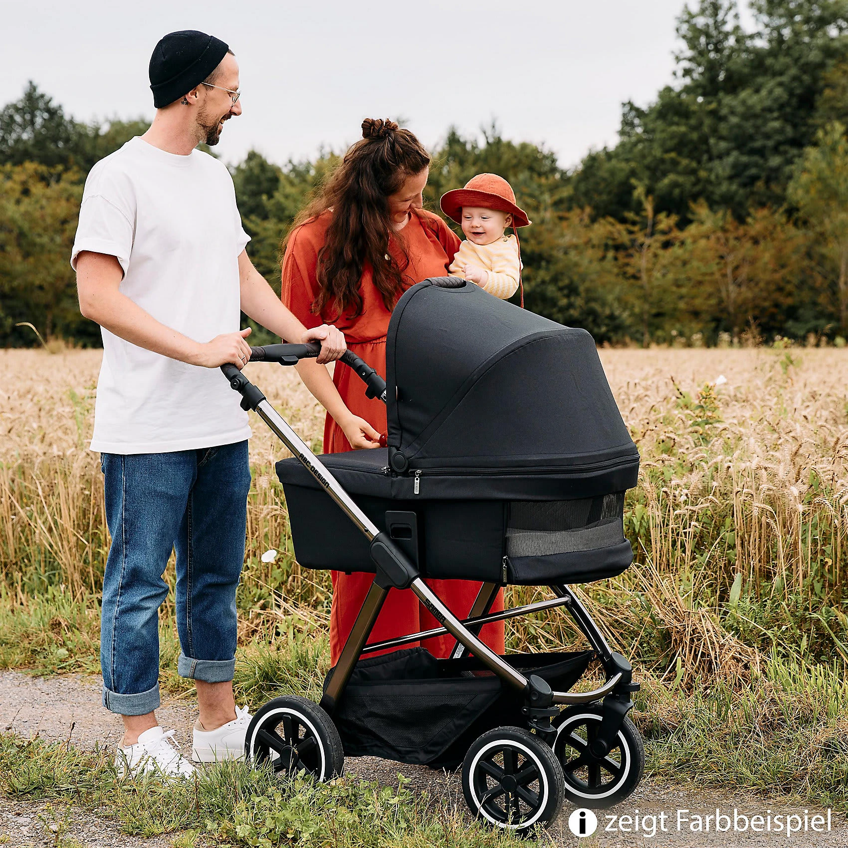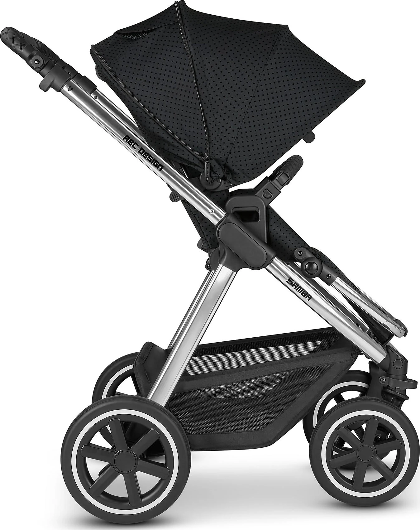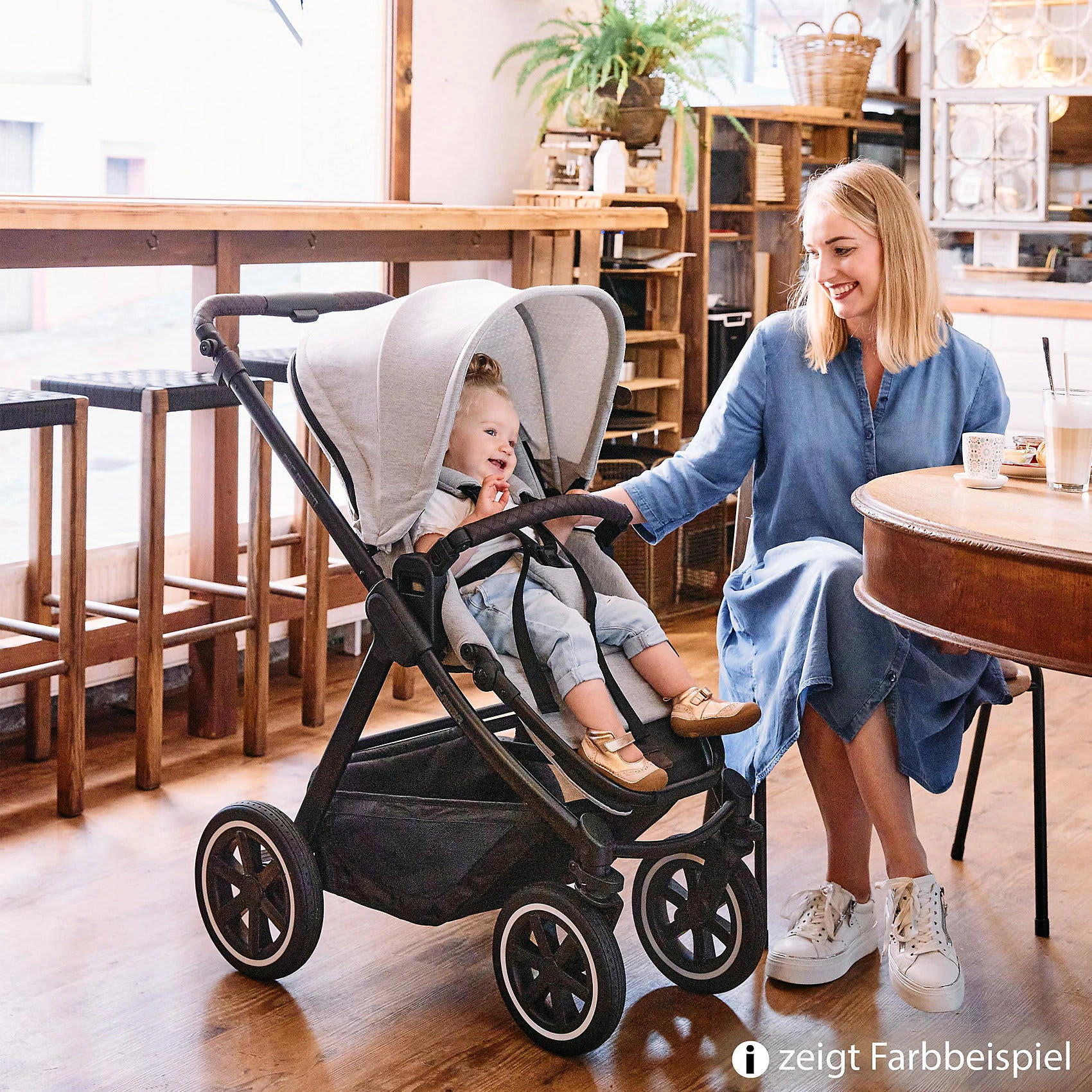 Der ABC Design Kombi-Kinderwagen “Samba” begleitet Familien besonders flexibel im Alltag. Babys haben es anfangs im Kinderwagenaufsatz auf der ergonomischen, keilförmigen Matratze sehr gemütlich. Später können sie die Welt vom Sportsitz aus erkunden. Auch die ABC Design Autobabyschale kann mit dem passenden Adapter auf dem Gestell befestigt werden.