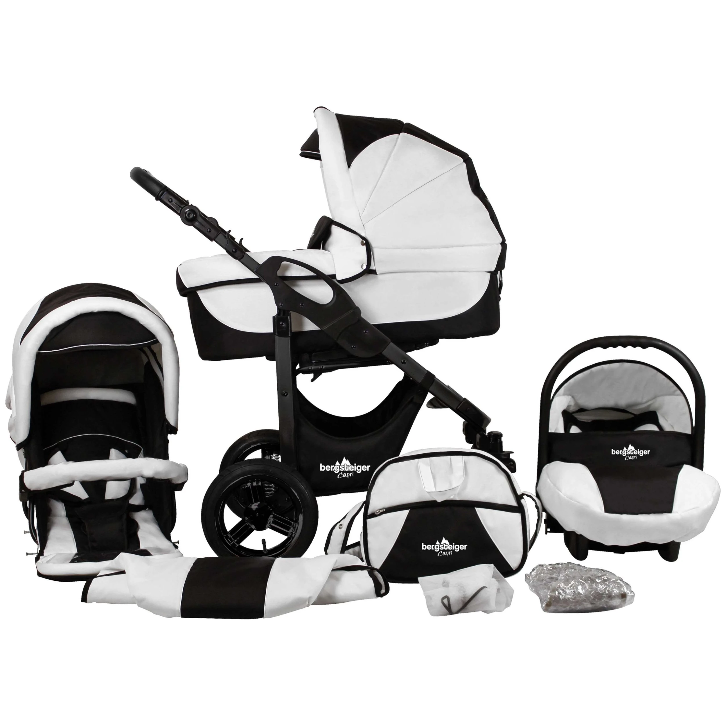 Bergsteiger 10tlg. Set: Kombi Kinderwagen “Capri” In Schwarz/Weiß