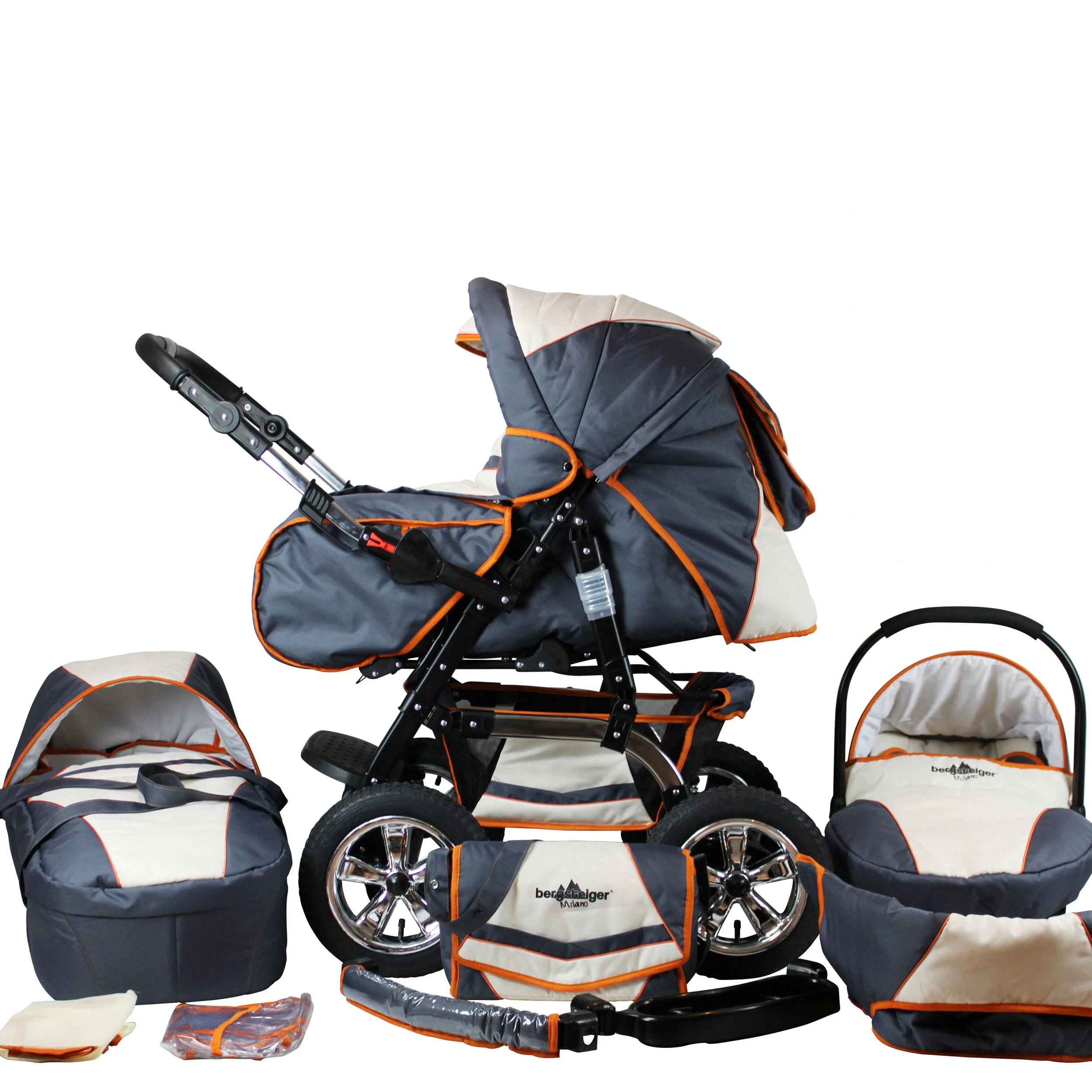 Bergsteiger 10tlg. Set: Kombi Kinderwagen “Milano” In Grau/Beige