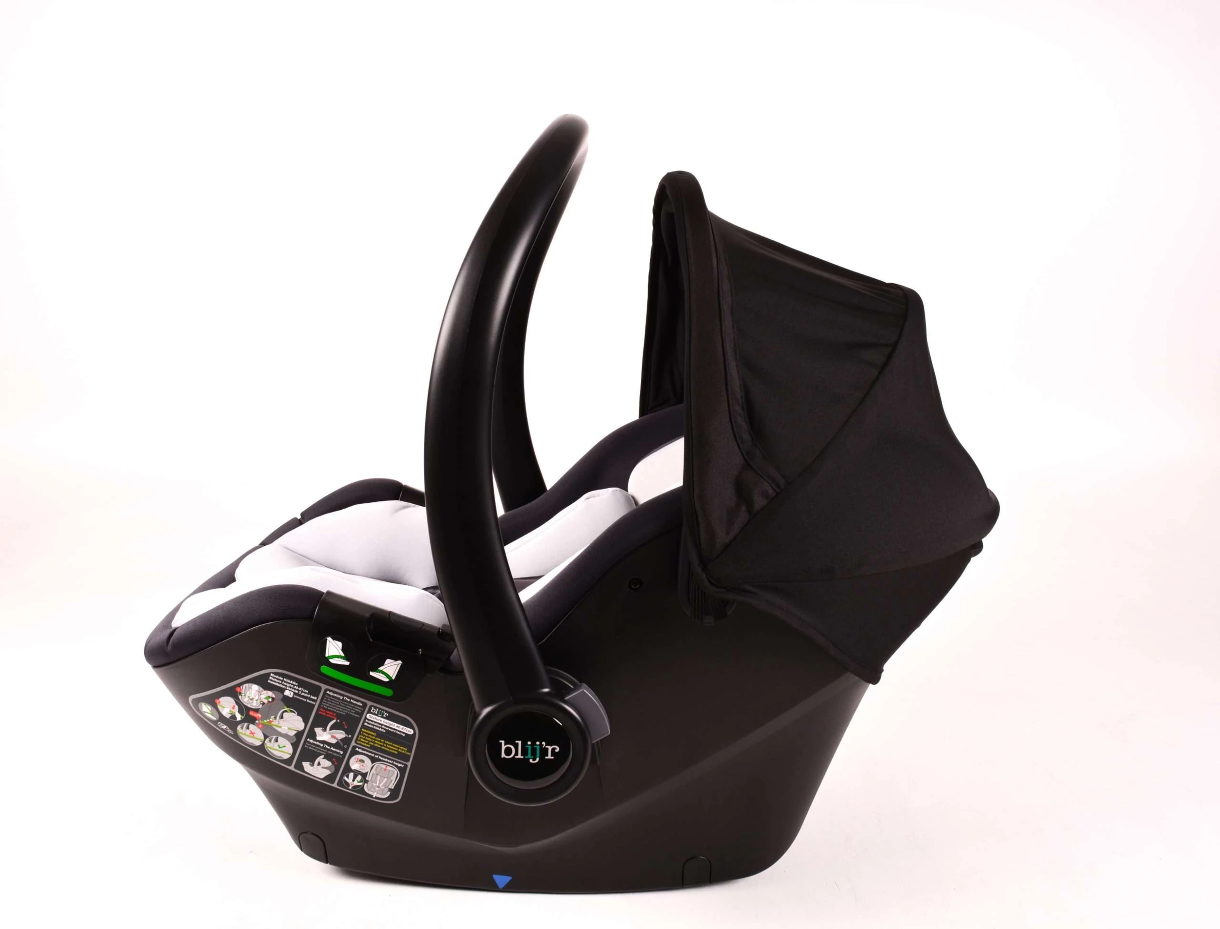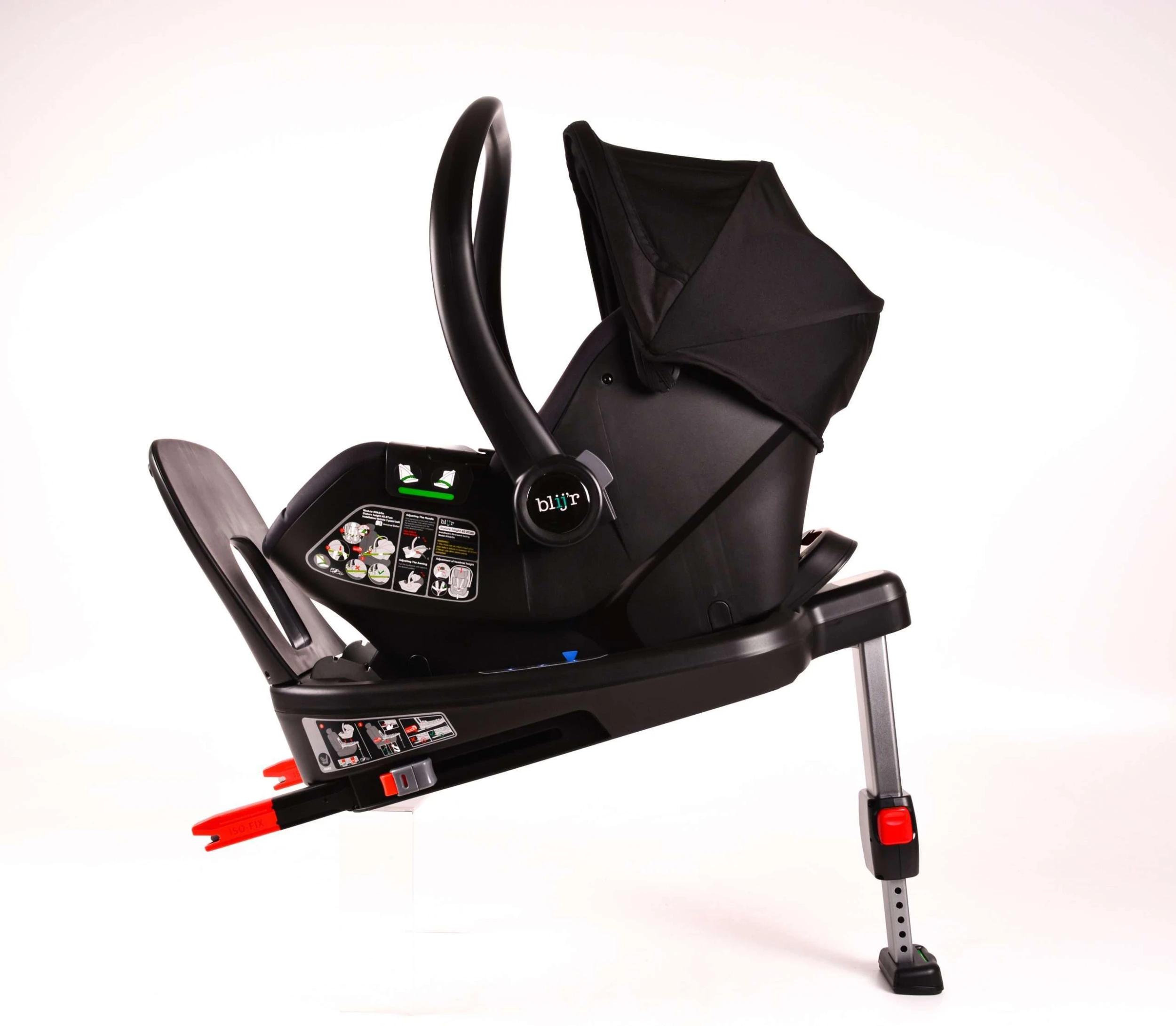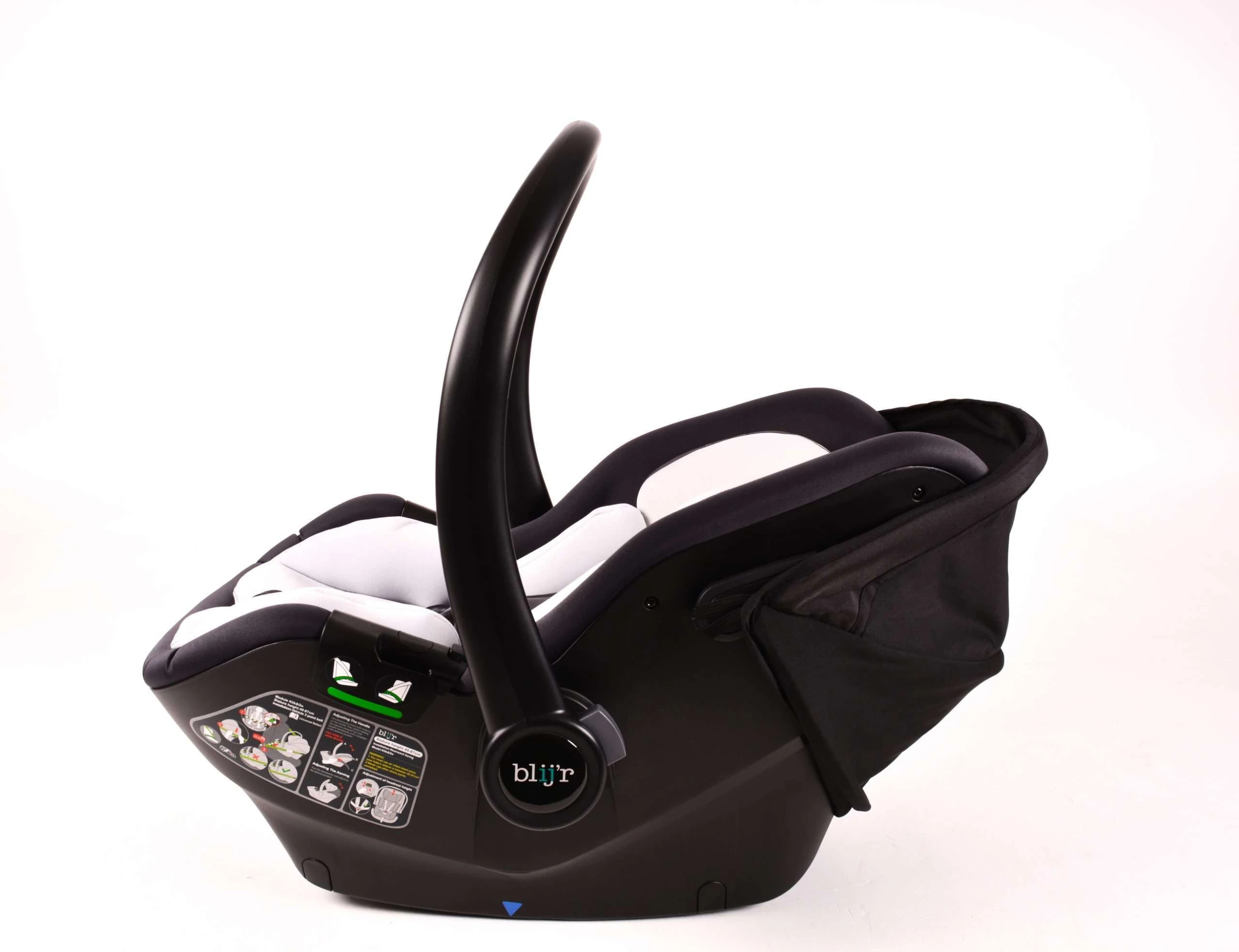Der Blij’r Klik&Go ist mit Indikatoren ausgestattet, die deutlich anzeigen, ob der Sitz korrekt im Auto installiert wurde. Der Sitz ist i-Size (R129) und RDW-geprüft.