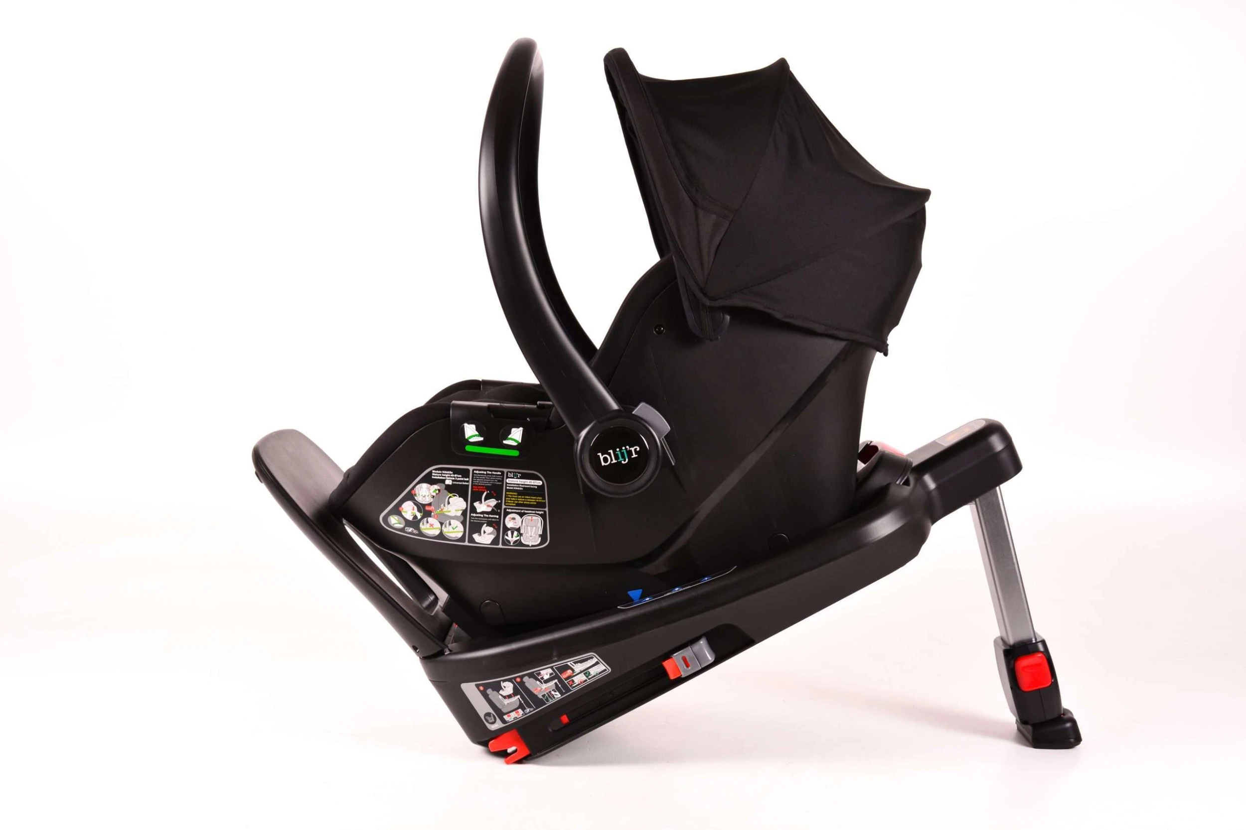 Der Blij’r Klik&Go ist mit Indikatoren ausgestattet, die deutlich anzeigen, ob der Sitz korrekt im Auto installiert wurde. Der Sitz ist i-Size (R129) und RDW-geprüft.