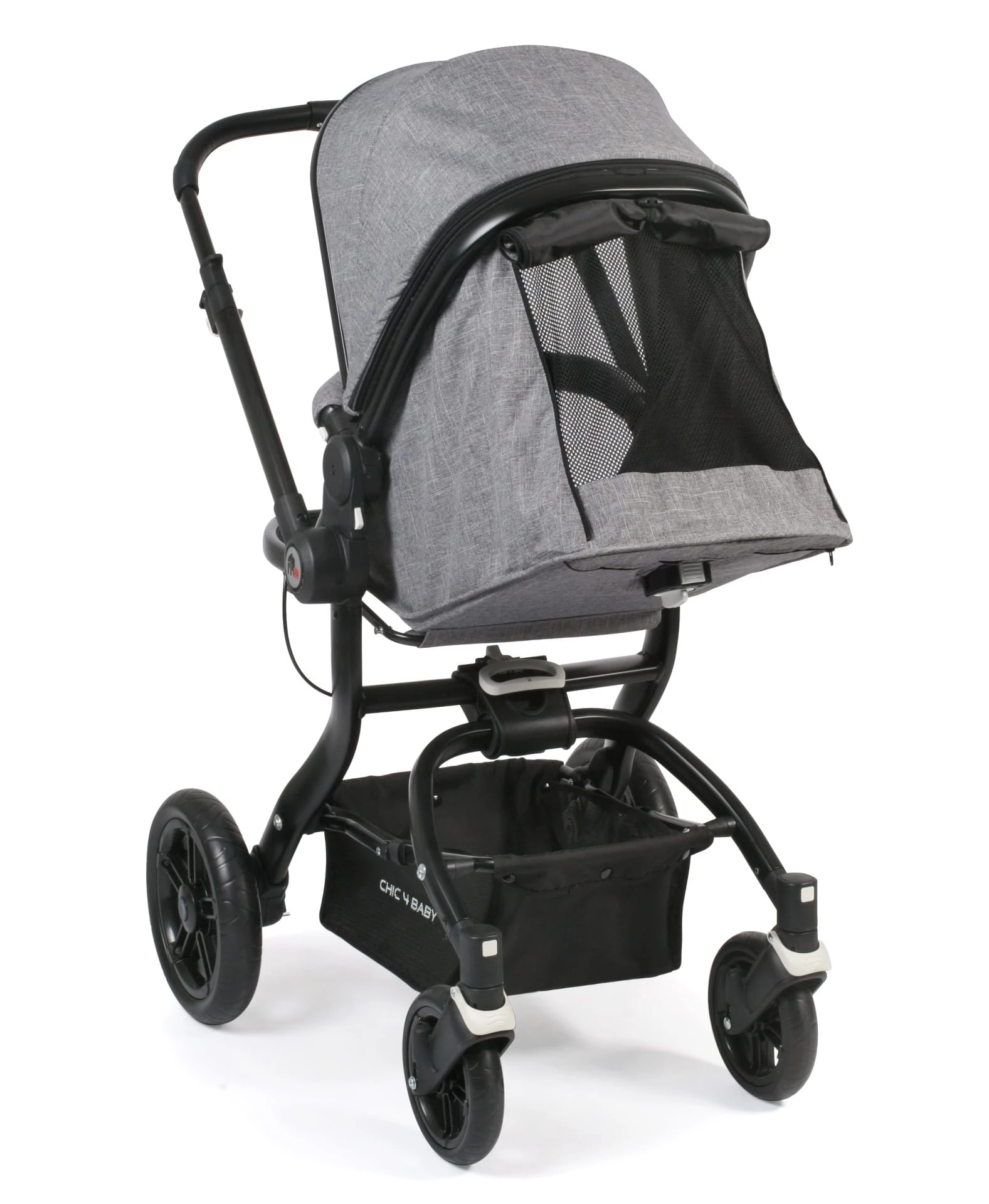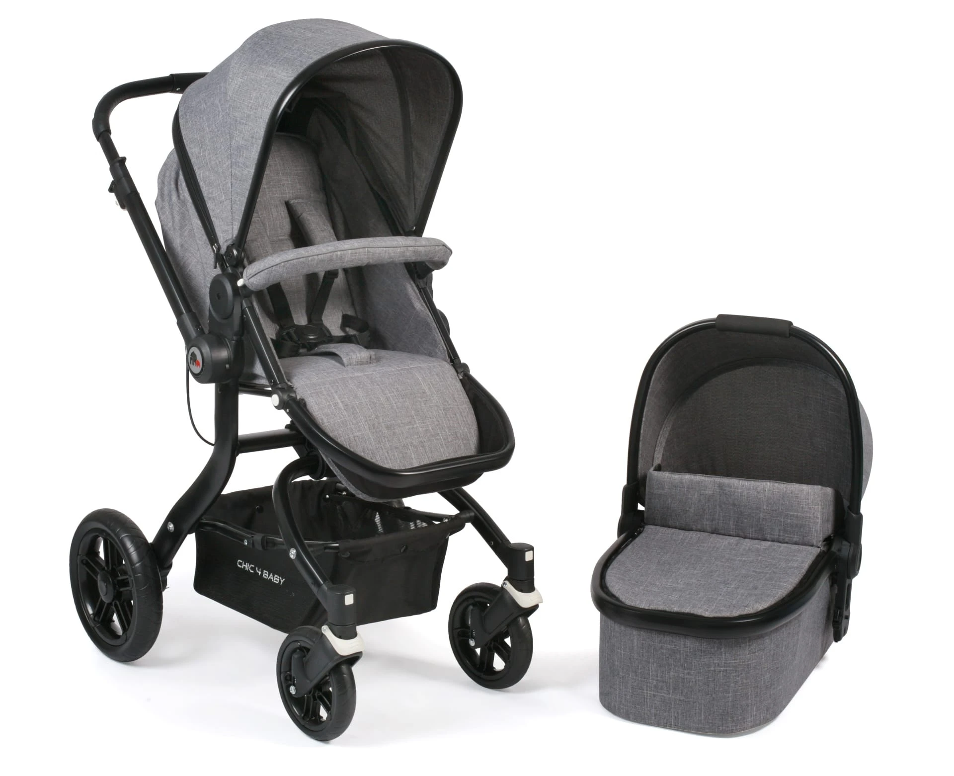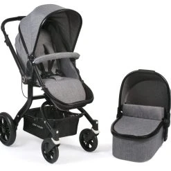 Der Kombi-Kinderwagen TANO überzeugt durch schickes Design und viele praktische Funktionen. Durch die 360° schwenk- und feststellbaren Vorderräder ist er extrem wendig. Die Federung der vier Luftkammerräder ermöglicht besten Fahrkomfort auch auf unebenen Wegen. Das leichte Aluminium-Gestell kann für den Transport ganz einfach und kompakt zusammengeklappt werden. Mit einem Klappmaß von 71 x 61 x 33 cm passt der Kinderwagen in jedes Auto. Der Sportwagenaufsatz kann in beide Richtungen aufgesetzt werden, so dass Sie Ihr Kind je nach Wunsch in Blick- oder in Fahrtrichtung setzen können. Zudem ist der höhenverstellbare Schieber schwenkbar. Die Rückenlehne ist stufenlos bis in die Liegeposition verstellbar und die Fußstütze lässt sich ebenfalls mehrfach verstellen, sodass das Kind auch im Sportwagen angenehm schlummern kann. Das Sportwagenverdeck hat ein Belüftungsnetz an der Rückseite und man kann eine zusätzliche Sektion am Verdeck öffnen, um Ihr Kind vor Sonne und Wetter zu schützen. Für die Sicherheit sorgen ein 5-Punkt-Sicherheitsgurt mit Schulterpolstern und gepolstertem Gurtschloss sowie der leicht abnehmbare Sicherheitsbügel. Der stabile Wannenaufsatz bietet eine weich gepolsterte Liegefläche und ein umklappbares Verdeck. Ein Maxi-Cosi Adapter ist im Lieferumfang enthalten.