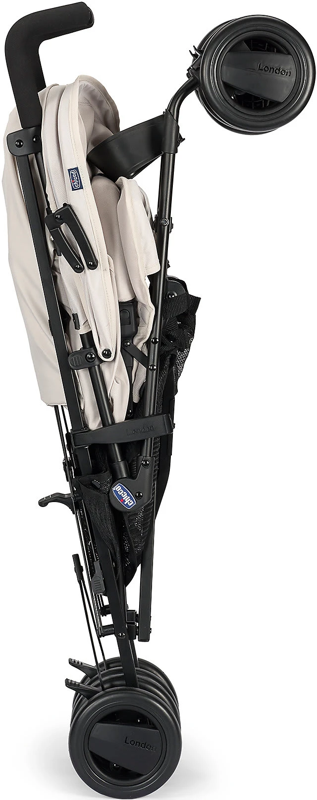 Der Buggy London UP lässt sich dank des Schirm-Schließmechanismus kompakt zusammenklappen und somit bequem transportieren. Besonders praktisch ist der große Einkaufskorb unter dem Sitz sowie der mitgelieferte Regenschutz.