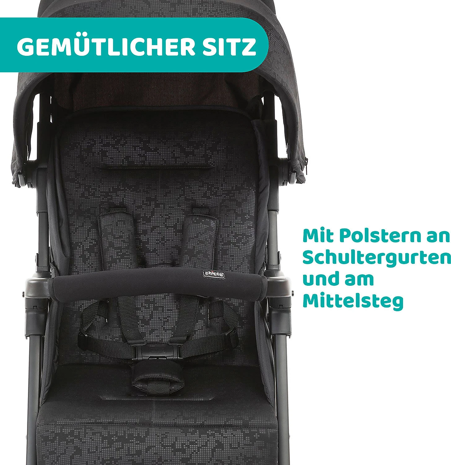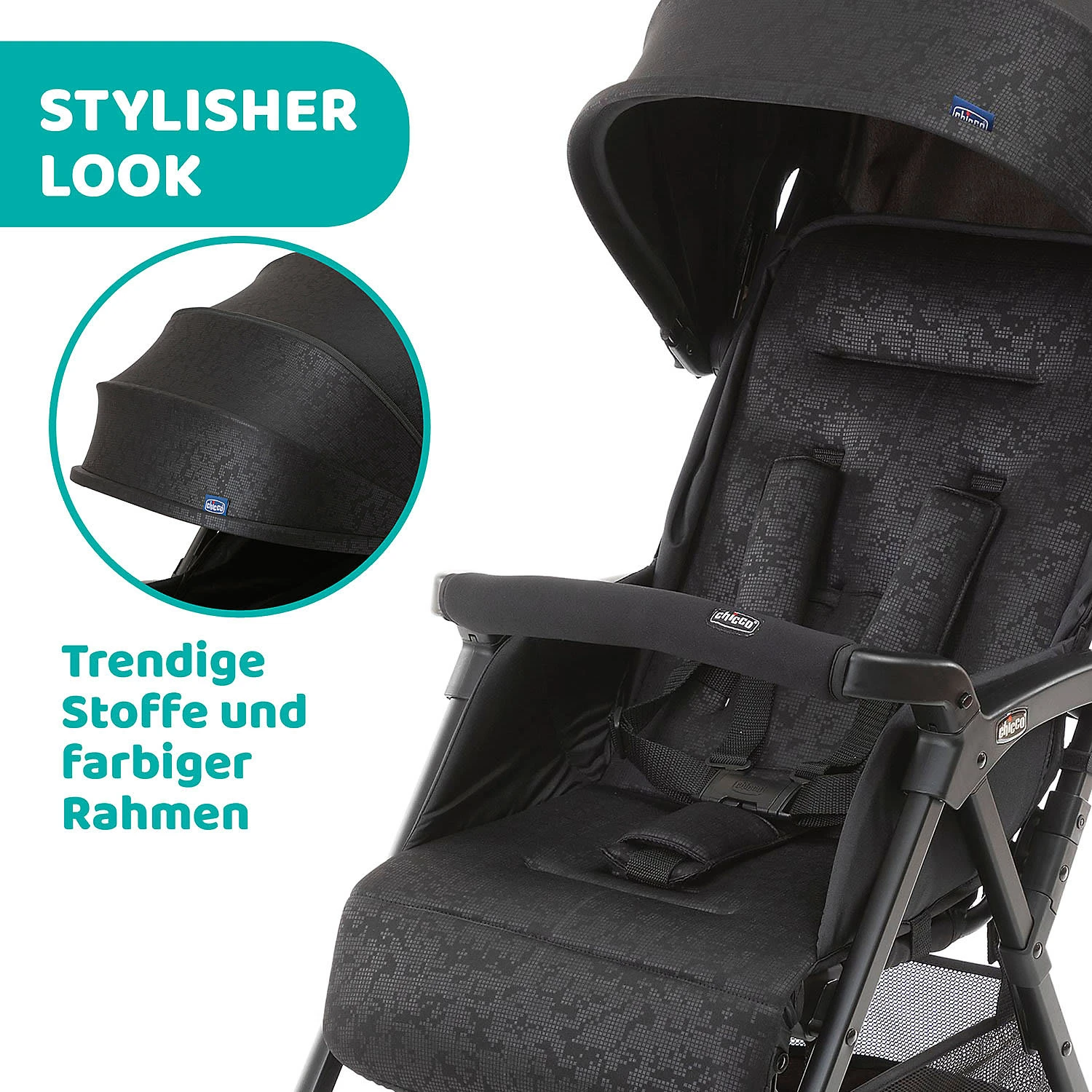 Der Buggy OHlalà3 ist ein absolutes Leichtgewicht und dabei auch noch kompakt im Faltmaß – das macht den Buggy zu einem perfekten Begleiter in der Stadt oder auf Reisen. Modern, trendy und bequem bietet der Hingucker viel Komfort für Kinder ab der Geburt bis zu einem Körpergewicht von 15 kg. Der Wagen im ansprechenden Design ist mit seinem Gewicht von lediglich 4,2 kg so leicht, dass er mit nur einem Finger gehoben und damit problemlos überallhin transportiert werden kann. Die Rückenlehne lässt sich stufenlos bis zur flachen Liegeposition absenken, die Fußstütze ist ebenfalls verstellbar. Das geräumige, erweiterbare Verdeck mit einem Sonnenschutz von UV 50+ schützt das Kind. Ein durchgehender Schieber ermöglicht eine ruhige Fahrt und einfaches Schieben mit einer Hand. Die pannensicheren Räder haben einen Durchmesser von 13,5 cm. Mit nur einem Handgriff lässt sich der Buggy OHlalà3 zudem schnell zusammenfalten und kompakt verstauen – dabei steht er im zusammengeklappten Zustand selbstständig. Inklusive Regenschutz, gepolsterten Gurten, geräumigem Korb und faltbarem Frontbügel. Der Bezug ist abnehm- und waschbar. B 47 cm – H 101 cm – L 81 cm