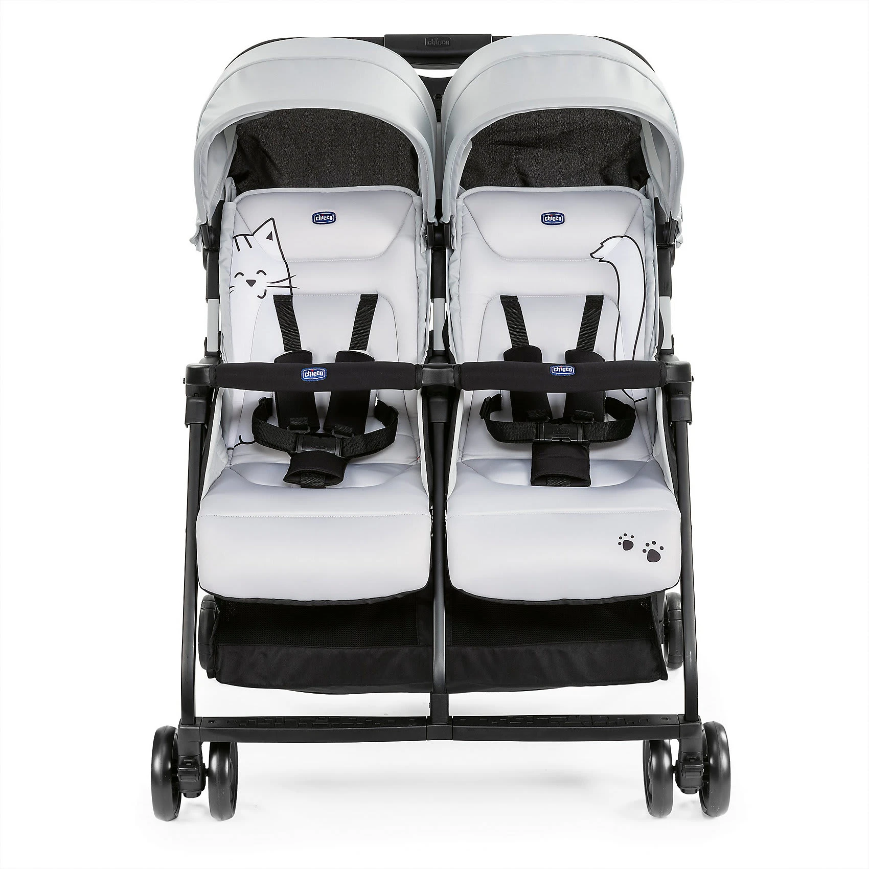 Dank der unabhängig voneinander bis zur flachen Liegeposition absenkbaren Rückenlehnen, der verstellbaren Fußstützen und der bequemen Sitzflächen ist zudem höchster Komfort für die kleinen Fahrgäste unterwegs garantiert, auch wenn eines lieber ruhen und das andere aber die Umgebung entdecken möchte. Die erweiterbaren, ebenfalls unabhängig voneinander einstellbaren Verdecke bieten Schutz vor dem Wetter.