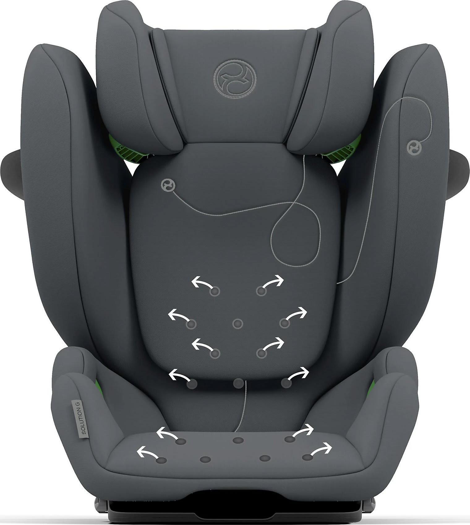 Das Belüftungssystem innerhalb des Solution G i-Fix lässt Luft durch den Kindersitz zirkulieren, damit es auch an warmen Tagen und bei langen Fahrten nicht zu einem Wärmestau kommt.