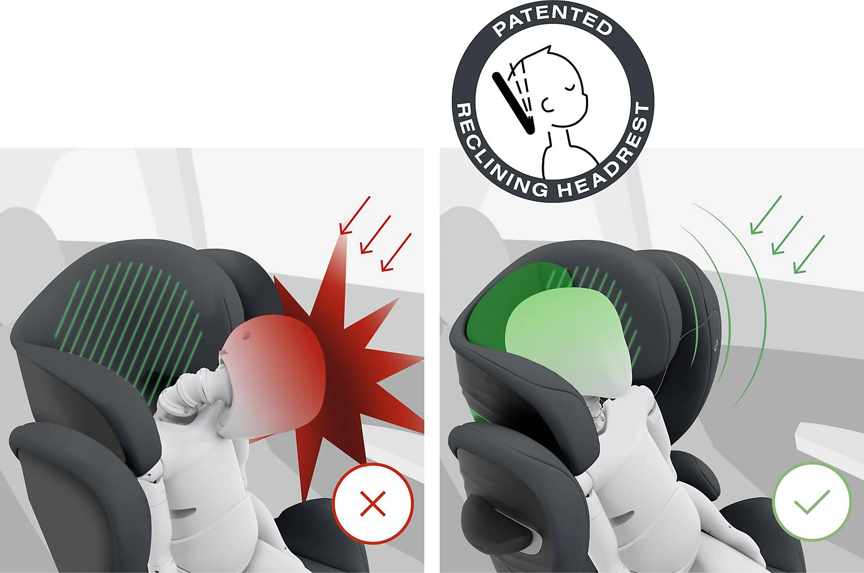 Damit der Sitz mit dem Kind mitwächst, ist die Kopfstütze in der Höhe verstellbar. Auch die Neigung kann angepasst werden, so dass das Kind immer in einer angenehmen Sitzposition bleibt, auch wenn die Augen zufallen. Außerdem wird verhindert, dass der Kopf nach vorn rutscht. Der Sitz kann ebenfalls neigungsverstellt werden, um auch bei Nickerchen bequem und ergonomisch zu bleiben.