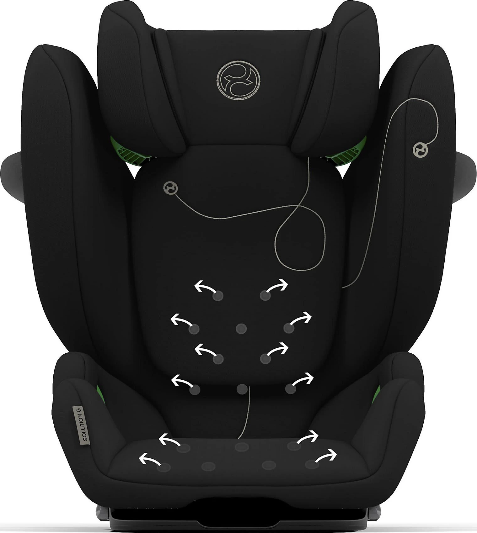 Das Belüftungssystem innerhalb des Solution G i-Fix lässt Luft durch den Kindersitz zirkulieren, damit es auch an warmen Tagen und bei langen Fahrten nicht zu einem Wärmestau kommt.