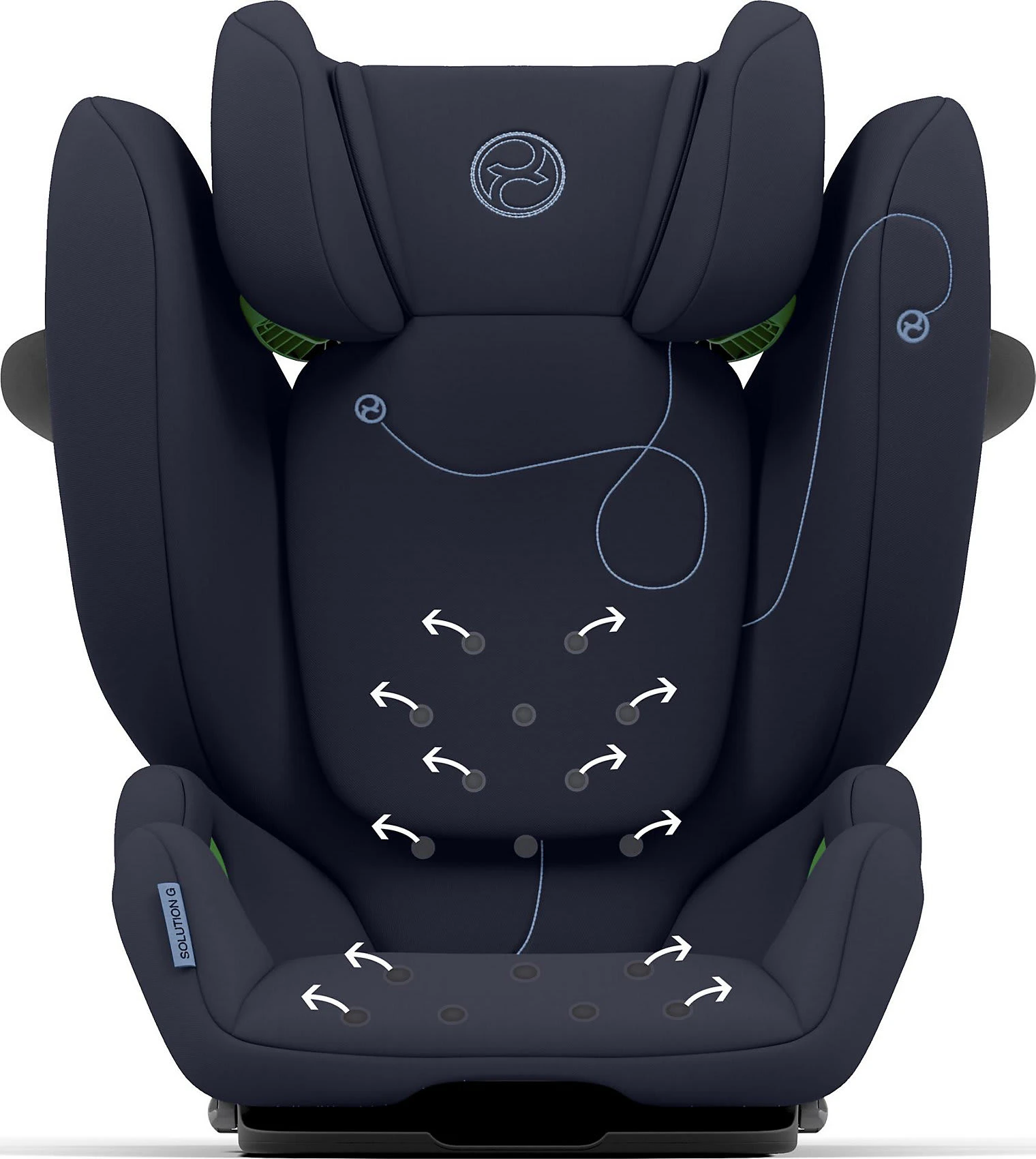 Das Belüftungssystem innerhalb des Solution G i-Fix lässt Luft durch den Kindersitz zirkulieren, damit es auch an warmen Tagen und bei langen Fahrten nicht zu einem Wärmestau kommt.
