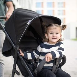 Der Schieber ist in der Höhe verstellbar, so dass alle Personen unabhängig von der Körpergröße den Buggy bequem schieben können. Aufgrund der Allradfederung ist die Fahrt auch für das Kind angenehm. Das Verdeck schützt außerdem vor unangenehmen Sonnenstrahlen und bietet bei Bedarf Privatsphäre. Die Rückenlehne kann jederzeit verstellt und auch in eine Liegeposition gebracht werden, wenn es Zeit für ein Nickerchen wird.