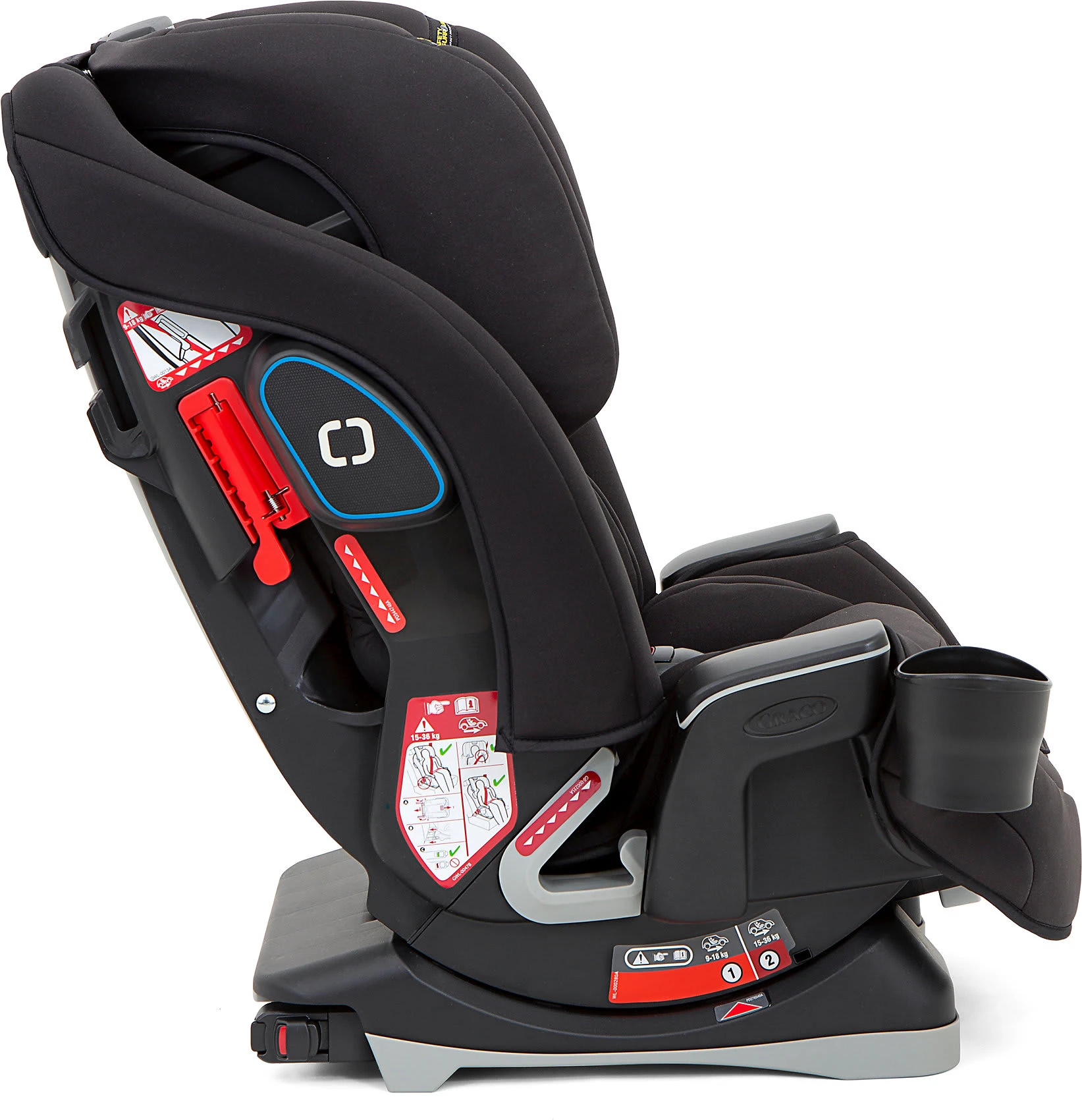 Der Auto-Kindersitz Avolve der Marke Graco begleitet Familien sehr lange und zuverlässig, da er mitwächst und den wechselnden Bedürfnissen des Kindes gerecht wird. Die weichen Einlagen können herausgenommen werden, wenn das Kind größer wird und mehr Platz braucht. Die Kopfstütze wird mit nur einem Handgriff verstellt, so dass es das Kind stets bequem hat und auch das Gurtsystem wächst automatisch mit. Wird das 5-Punkt-Gurtsystem nicht mehr benötigt, kann es ordentlich und griffbereit im Aufbewahrungsfach des Sitzes verstaut werden. Das Kind wird dann mit dem 3-Punkt-Gurt des Autos angeschnallt. Der Neigungswinkel des Sitzes lässt sich entsprechend verstellen.