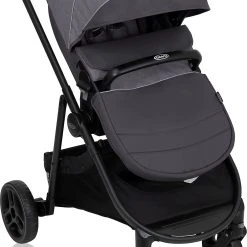 Der Transform-Kinderwagen 2-in-1 von Graco besitzt eine 2-in1-Funktion. Der wandelbare Aufsatz lässt sich als Kinderwagenaufsatz direkt ab Geburt nutzen. In umgeklappter Version dient er später als Sportsitz. Zusammengeklappt lässt sich der Kinderwagen frei hinstellen. Das Gestell ist mit den Babyschalen Graco® SnugRide® oder Graco® SnugEssentials™ i-Size (mit Click Connect™-Technik – ohne Adapter) kompatibel. Gegen Sonne schützt das erweiterbare Verdeck und gegen Regen das im Lieferumfang enthaltene Regenverdeck. Ein Fußsack wird ebenfalls mitgeliefert. So muss Ihr Kleines im Herbst und Winter nicht frieren.