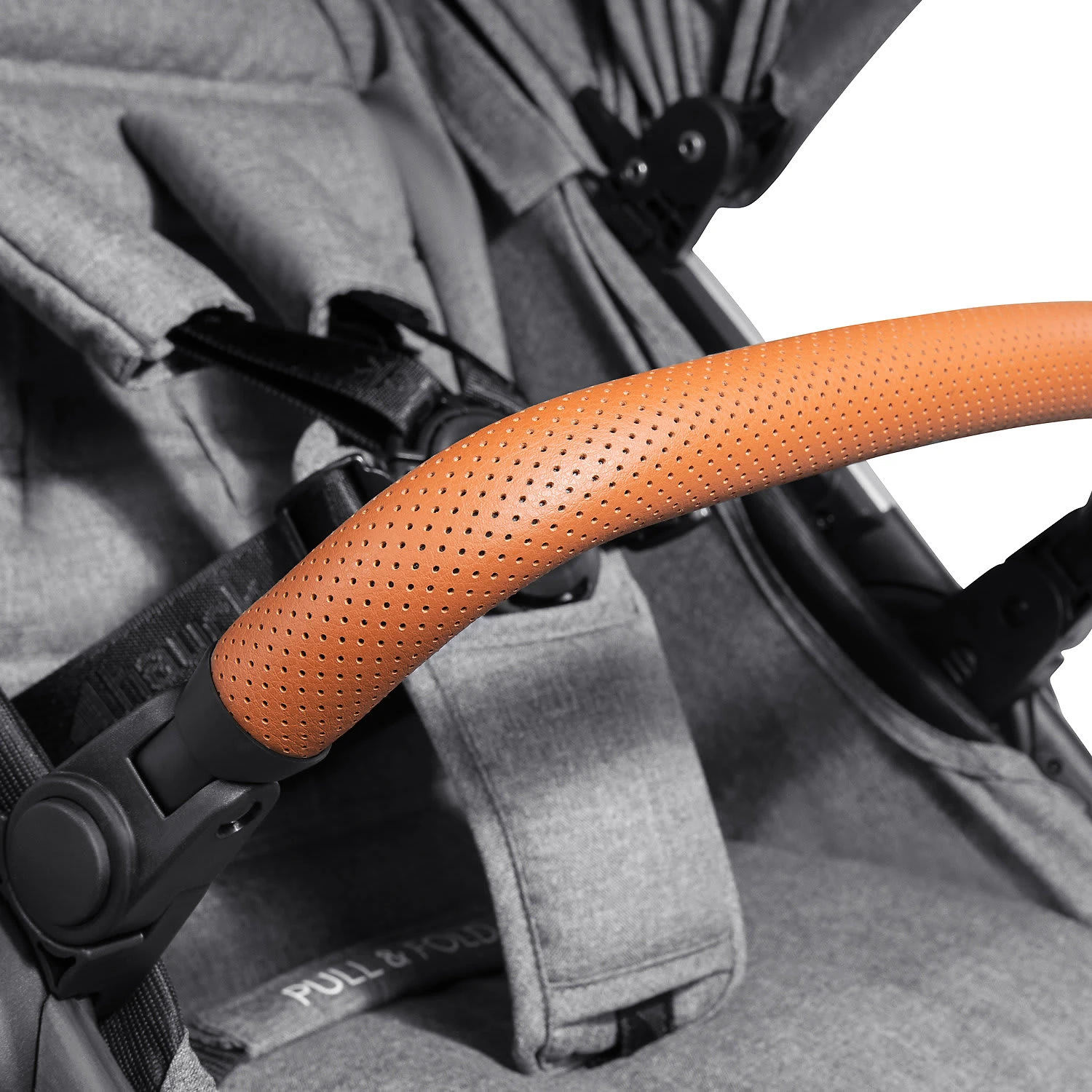 Der Sportwagen Uptown von Hauck ist ein stilvoller Allrounder. Er begeistert mit einem modernen Design und eleganten Akzenten in Leder-Optik. Altersempfehlung: ab 6 Monaten, mit separat erhältlichen Zubehör ab Geburt Belastbarkeit: Sitz bis 22 kg, Korb bis 3 kg Verwendung: für die Stadt, als Travelsystem mit Babyschale (separat erhältlich) Klappmaß: 83(L) x 59,5(B) x 50(H) cm Gewicht: 10,2 kg Räder: gefederte Gummiräder, Vorderräder schwenk- und feststellbar Lieferumfang: Gestell, Sportsitz, Verdeck, XL-Untergestellkorb Gestell: Aluminium, kompakt faltbar, verstellbarer Schiebegriff aus Kunstleder (100 bis 106 cm), Feststellbremse Sportsitz: 5-Punkt-Sicherheitsgurt, bis in die Liegeposition verstellbare Rückenlehne, verstellbare Fußstütze, abnehmbarer, verstellbarer Vorderbügel aus Kunstleder, verlängerbares 3-Zonen-Verdeck mit abdeckbarem Belüftungsfenster und UV-Schutz 50+, Getränkehalter, Liegefläche 85(L) x 36(B) cm Sicherheit und Komfort Er punktet mit einem coolen Design und praktischen Funktionen – der Uptown ist ein echter Alltime-Allrounder für aktive Familien. Seine sportive Optik mit kontrastiven Kunstlederdetails am Bügel und am Schieber macht ihn zum Hingucker. Das große Verdeck schützt den Nachwuchs vor Wind und Wetter. Es ist mit einem Belüftungsfenster versehen, das einen optimalen Luftaustausch und Sichtkontakt mit dem Nachwuchs ermöglicht. Aber auch in puncto Sicherheit hat er einiges zu bieten: Der 5-Punkt-Gurt sorgt zusammen mit dem abnehmbaren Vorderbügel dafür, dass das Kind jederzeit im Sitz verbleibt. Der Nachwuchs möchte schlummern? Kein Problem, dazu wird einfach die Rückenlehne bis in die Liegeposition verstellt. Auch die Fußstütze ist anpassbar. Dank des praktischen Getränkehalters ist das Lieblingsgetränk immer in Griffweite. Für Spielzeug, Accessoires und Einkäufe steht der extragroße Einkaufskorb zur Verfügung. Gestell und Fahrwerk Der Uptown baut auf ein solides Aluminiumgestell. Der Schiebegriff ist höhenverstellbar, damit unterschiedlich große Eltern den Wagen schieben können. Für Transportzwecke wird der Sportwagen schnell zusammengefaltet. Die Entriegelungsschlaufe im Sitz ist zugleich praktischer Tragegriff. Damit kann der Uptown mühelos in Bus und Bahn oder die Treppe hoch transportiert werden. Die Gummiräder sind pannensicher und gefedert. Die Vorderräder sind schwenkbar, was den Wagen auch engste Gassen mühelos meistern lässt. Mit der Feststellbremse parkt der Uptown sicher. Lieferumfang Der Lieferumfang des Sportwagens beinhaltet das Gestell, den Sportsitz samt Verdeck und den Gestellkorb.