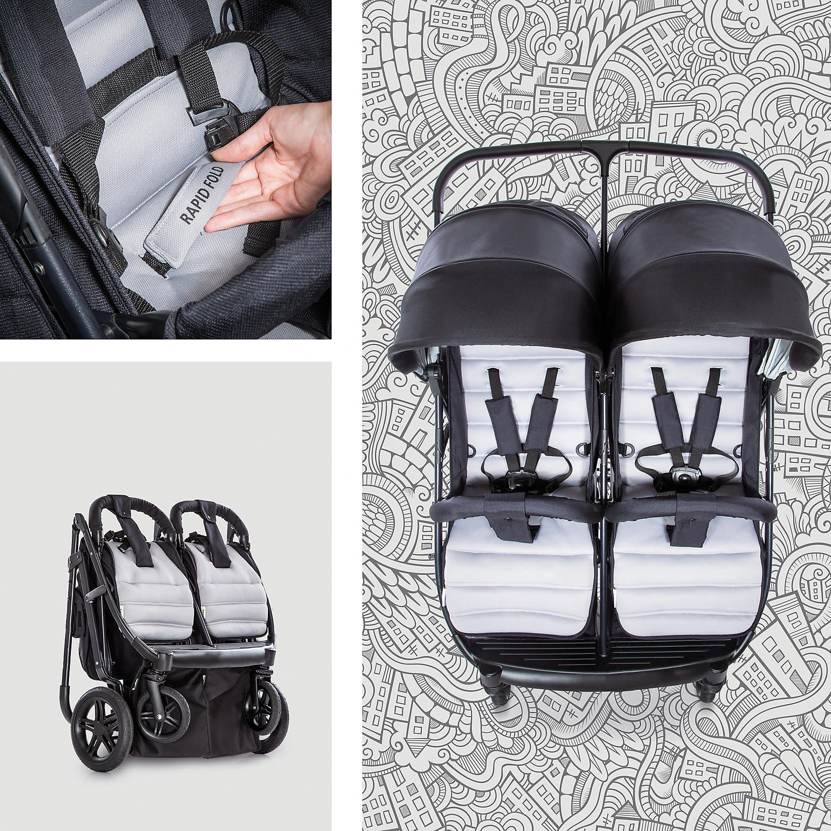 HAUCK Geschwisterwagen Rapid 3R Duo, Silver/Charcoal