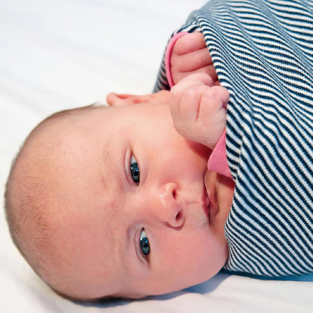 Viele Babys finden durch unkontrollierte Armbewegungen nicht gut in den Schlaf oder wecken sich in Leichtschlafphasen selber wieder auf.