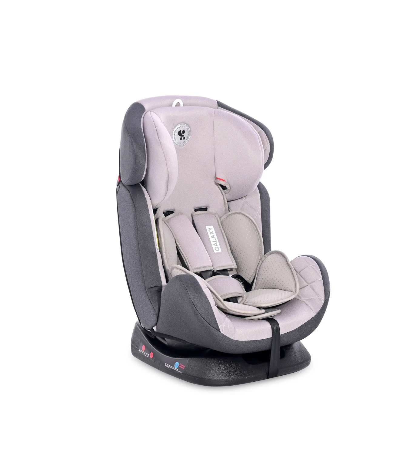Wenn Kinder im Auto mitreisen, sollen sie sicher sein. Der Kindersitz Galaxy von Lorelli ist hierfür optimal. Er gehört zur Gruppe 0+/1/2/3 (0-36 kg) und ist ab Geburt bis ungefähr 12 Jahre geeignet. Im Autositz wird Ihr Baby mit dem 5-Punkt Sicherheitsgurt und weichen Kopf- und Körperkissen entgegen der Fahrtrichtung gesichert. Die Rückenlehne ist in drei Positionen verstellbar, die Kopfstütze kann 9-fach verstellt werden. Größere Kinder fahren in Fahrtrichtung mit. Hierfür wird der Kindersitz gedreht und mit dem 3-Punkt Autogurt im Fahrzeug gesichert. Der Autositz ist nach der Europäischen Sicherheitsnorm ECE R44/04 geprüft und zugelassen. Die Bezüge sind abnehmbar und waschbar.