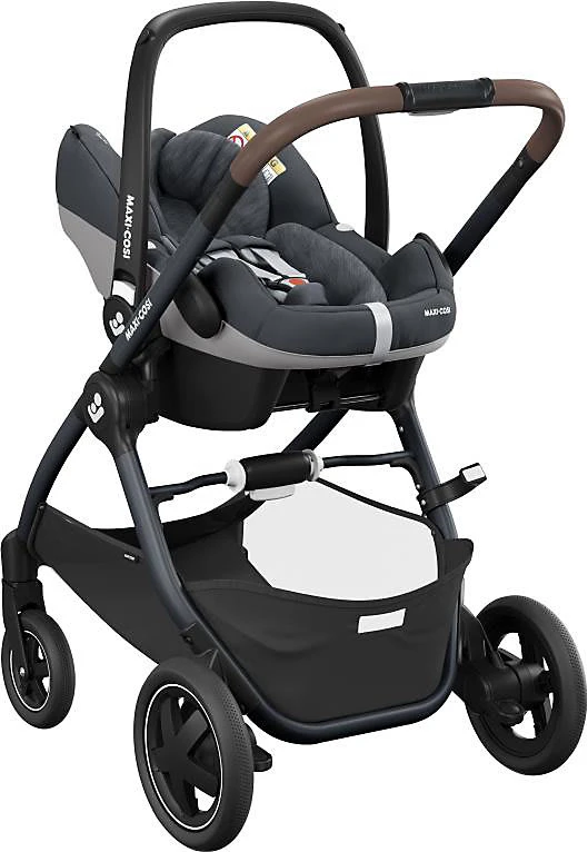 Das Gestell auch mit ausgewählten Maxi Cosi Tragewannen sowie Babyschalen kompatibel. Mittels Adapter können diese auf dem Gestell befestigt werden. So kann der Buggy ab der Geburt zum Einsatz kommen und der Übergang vom Auto zum Buggy gelingt schnell und ohne das Kind zu wecken.
