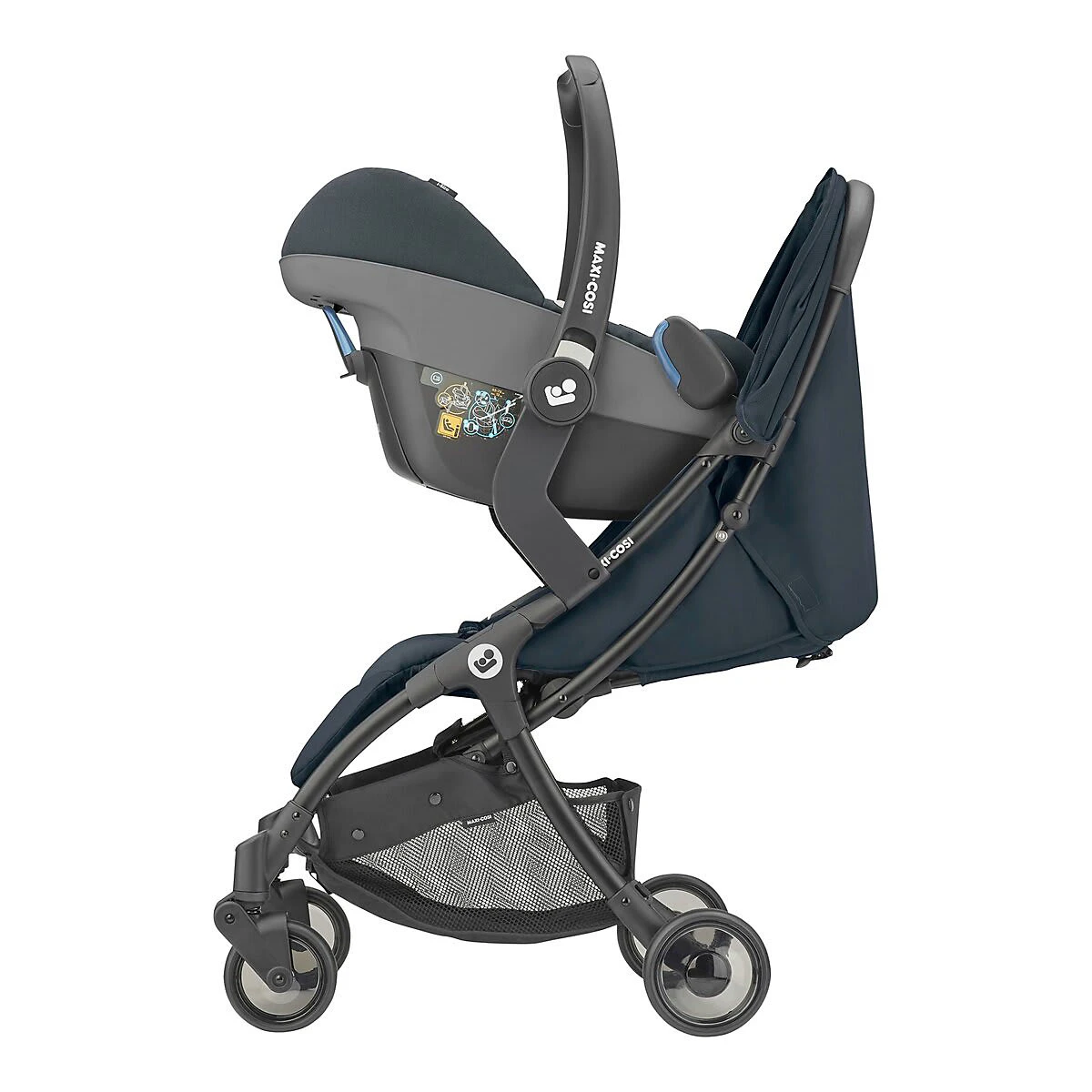 Der Buggy Jaya von Maxi-Cosi verfügt über einen innovativen Faltmechanismus. Du kannst ihn innerhalb von einer Sekunde zusammenklappen und dank seines geringen Gewichts kinderleicht transportieren. So bist Du im Alltag mit Deinem Kind flexibel unterwegs. Altersempfehlung: ab Geburt mit Zubehör (separat erhältlich) Belastbarkeit: bis 22 kg, Untergestellkorb bis 3 kg Verwendung: für die Stadt, als Travelsystem mit Adaptern und Babyschale (beides separat erhältlich) Klappmaß: 55,5(L) x 46(B) x 26(H) cm Gewicht: 6,9 kg Räder: Luftkammerräder, vorn schwenk- und feststellbar Lieferumfang: Gestell mit Rädern und Einkaufskorb, Sitzeinheit mit Sicherheitsbügel und Verdeck Gestell: aus Aluminium, automatische Faltfunktion, Untergestellkorb, Feststellbremse Sitzeinheit: gepolsterter 5-Punkt-Gurt, bis in die Liegeposition verstellbare Rückenlehne, verstellbare Beinablage, schwenkbarer Vorderbügel mit Durchrutschschutz, ausziehbares Verdeck mit Sichtfenster Sicherheit und Komfort Der Buggy Jaya von Maxi-Cosi kann mit separat erhältlichem Zubehör bereits ab Geburt des Kindes verwendet werden. Solo bietet er Deinem Nachwuchs einen komfortablen Platz, sobald er selbstständig sitzen kann. Die gepolsterte Sitzeinheit sorgt für optimalen Komfort. Die Rückenlehne kann bis in die Liegeposition geneigt werden. Auch die Beinstütze ist verstellbar. Einem entspannten Nickerchen steht so nichts im Wege. Neben dem gepolsterten und verstellbaren 5-Punkt-Gurt verfügt der Buggy auch über einen Vorderbügel. Er dient den Minis zum Festhalten, bietet ihnen zusätzliche Sicheheit und kann auch zur Befestigung von Spielzeugen genutzt werden. Für ein einfaches Ein- und Aussteigen ist der Bügel schwenkbar. Das ausziehbare Verdeck hält zu viel Sonne oder leichten Niederschlag auf Abstand. Es ist mit einem Sichtfenster ausgestattet. So hast Du Dein Kind jederzeit im Blick. Gestell und Fahrwerk Der Clou des leichten Aluminiumgestells ist der praktische Faltmechanismus: Im Nu ist der Buggy Jaya zusammengeklappt und bereit für einen unkomplizierten Transport. Auch das Auseinanderfalten geht fix vonstatten. Das Schieben gestaltet sich dank des durchgängigen Schiebers und der Luftkammerräder leicht und komfortabel. Auch die optionale Schwenkfunktion der Vorderräder trägt ihren Teil zu den leichten und wendigen Eigenschaften des Gefährts bei. Mit der Feststellbremse kannst Du den Wagen sichern, sobald die Fahrt beendet ist. Lieferumfang Zum Lieferumfang gehören das Gestell mit Rädern, die Sitzeinheit und das Verdeck. Auch der bis zu drei Kilogramm belastbare Einkaufskorb ist inbegriffen.