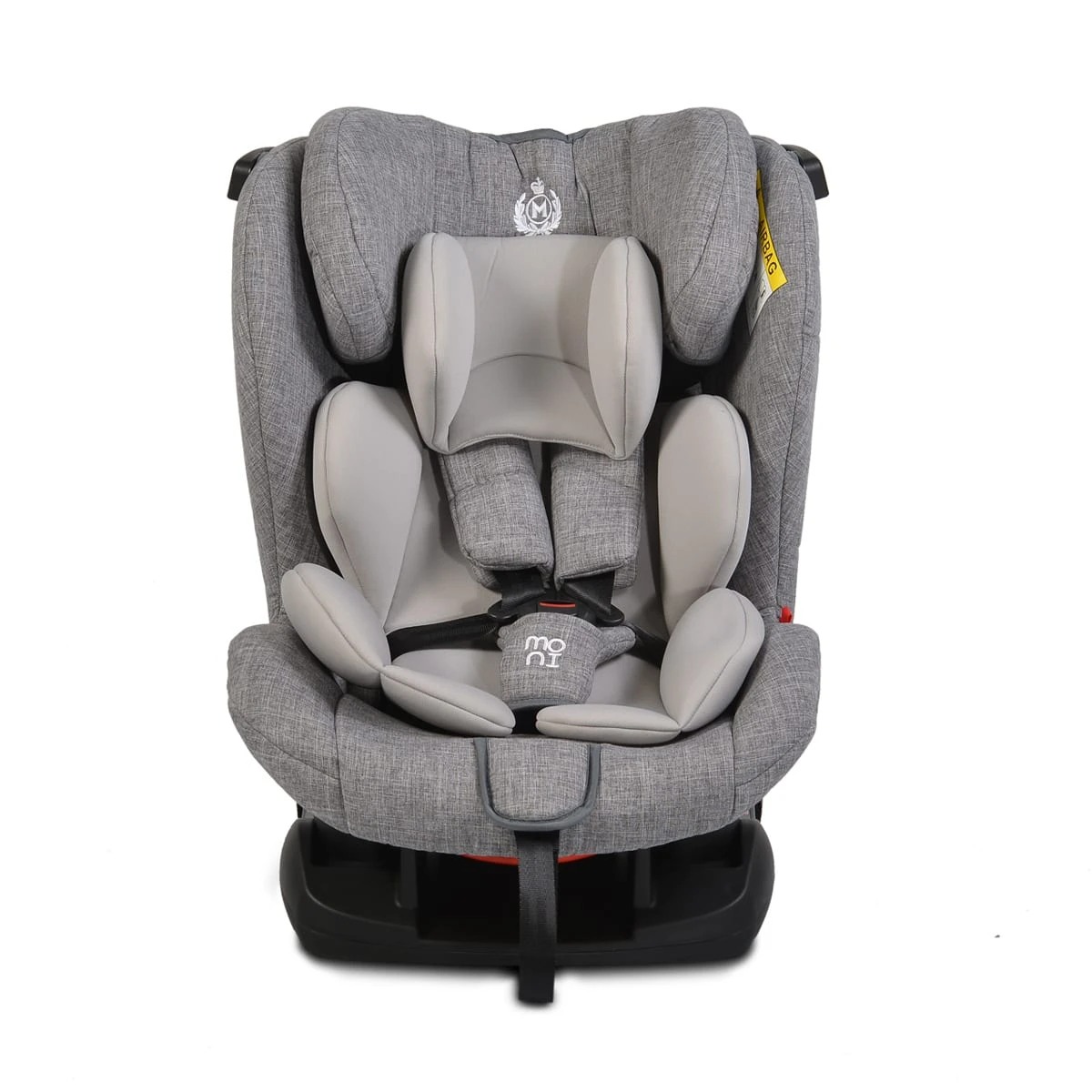 Der Kindersitz Marshall von Moni wächst mit Ihrem Kind mit. Er gehört zur Gruppe 0/1/2/3 und schützt Ihr Baby ab Geburt bis maximal 36 Kilogramm. Idealerweise wird der Autositz bei Kindern von bis 0-13 kg im Fahrzeug, entgegen der Fahrtrichtung eingesetzt. Ihr Kind wird mit einem 5-Punkt-Sicherheitsgurt im Autositz gesichert. Durch die weichen Schulterpolster und der hohen Rückenlehne, ist Ihr Kind zusätzlich geschützt. Die Rückenlehne ist 4-fach verstellbar und kann nur mit einer Hand eingestellt werden. Der ansprechende Sitzbezug, lässt sich bei Bedarf einfach bei 30 Grad in der Maschine waschen.