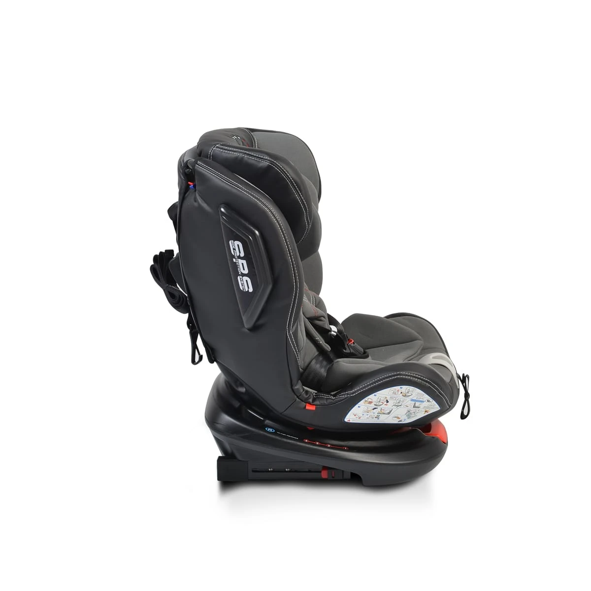 Der Kindersitz Motion von Moni gehört zur Gruppe 0/1/2/3 und schützt Ihr Baby ab Geburt bis maximal 36 Kilogramm. Idealerweise wird der Autositz bei Kindern von 0-13 kg im Fahrzeug entgegen der Fahrtrichtung (Reboard) installiert. Der Sitz ist um 360 Grad drehbar wodurch Ihr Kind auch in Fahrtrichtung im Auto mitfahren kann. Durch die SIPS Seitensicherung und die weichen Kopf- und Schulterkissen ist Ihr Kind zusätzlich geschützt. Der Kindersitz verfügt über vier Rückenneigungspositionen, die mit einer Hand eingestellt werden können. Die Polsterung besteht aus hochwertigem Öko-Leder und Polyester. Für hohe Sicherheit während der Autofahrt wird der Kindersitz mit dem Isofix-System im Fahrzeug gesichert.