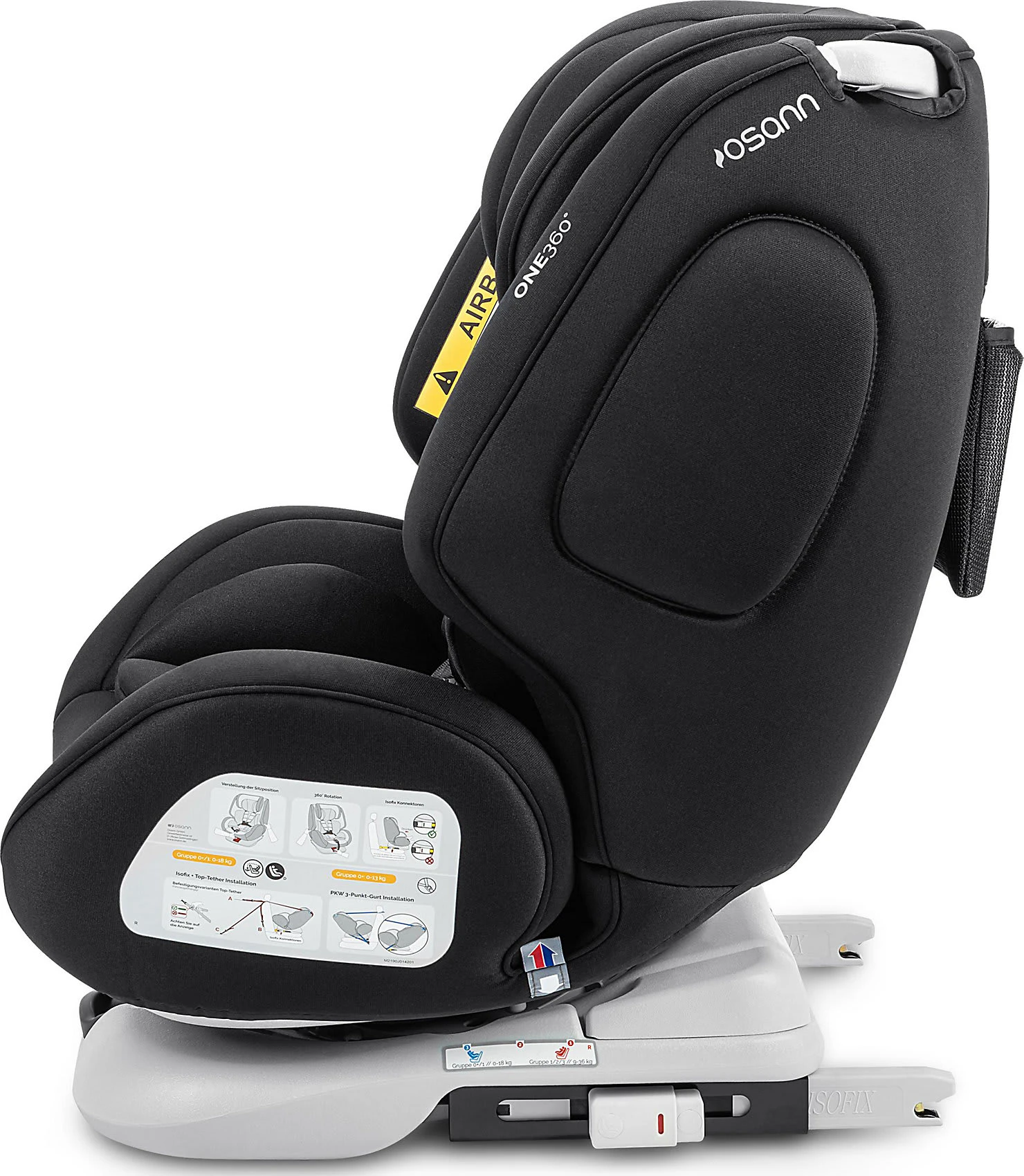 Der OSANN Auto-Kindersitz ONE 360° deckt mit einem Sitz alle Altersklassen ab. Er lässt sich von Geburt an nutzen. Der Autositz kann rückwärtsgerichtet auf der Sitzbank angebracht werden, bis das Kind etwa 4 Jahre alt ist. Beim Fahren entgegen der Fahrtrichtung ist das Verletzungsrisiko für kleine Kinder geringer. Anschließend kann der Sitz auch in Fahrtrichtung noch lange genutzt werden.