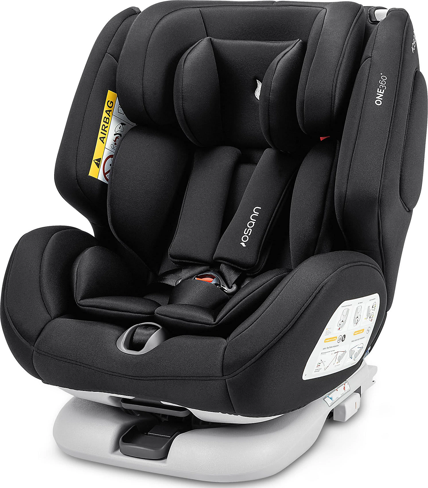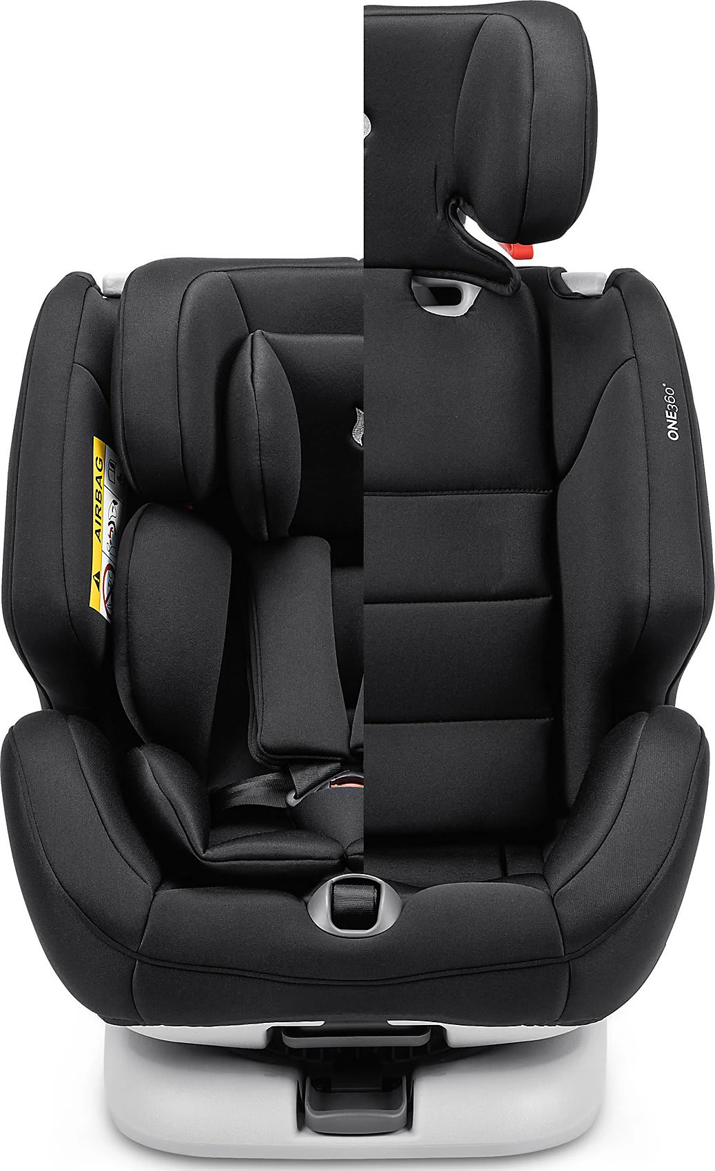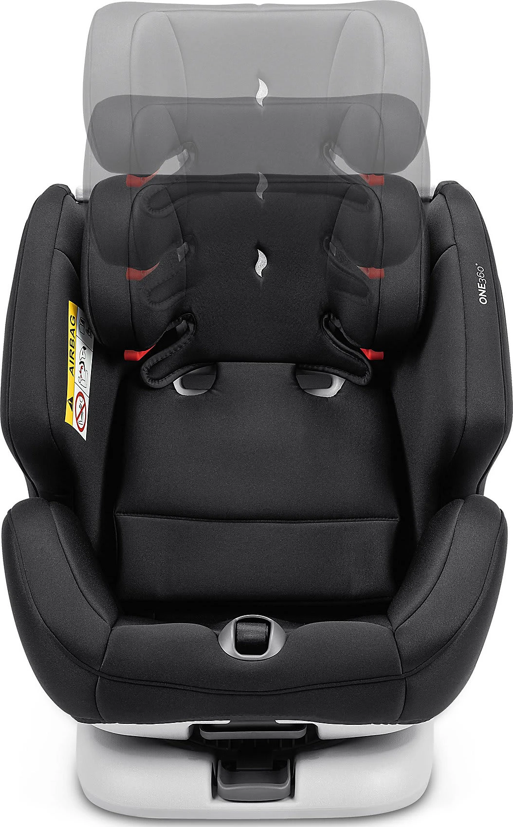 Durch die 360°-Drehung wird Eltern das beidseitige Ein- und Aussteigen besonders leicht gemacht. Die Kopfstütze des One 360° ist in ihrer Höhe mehrfach verstellbar, passt sich dem Kindesalter und Gewicht optimal an und wächst mit. Dabei passt sich die Gurthöhe bei Höhenverstellung der Kopfstütze automatisch an. Das zentral verstellbare Gurtsystem ermöglicht eine einfache Handhabung. Die einschiebbaren Isofix-Konnektoren sorgen für optimalen Halt am Fahrzeug.