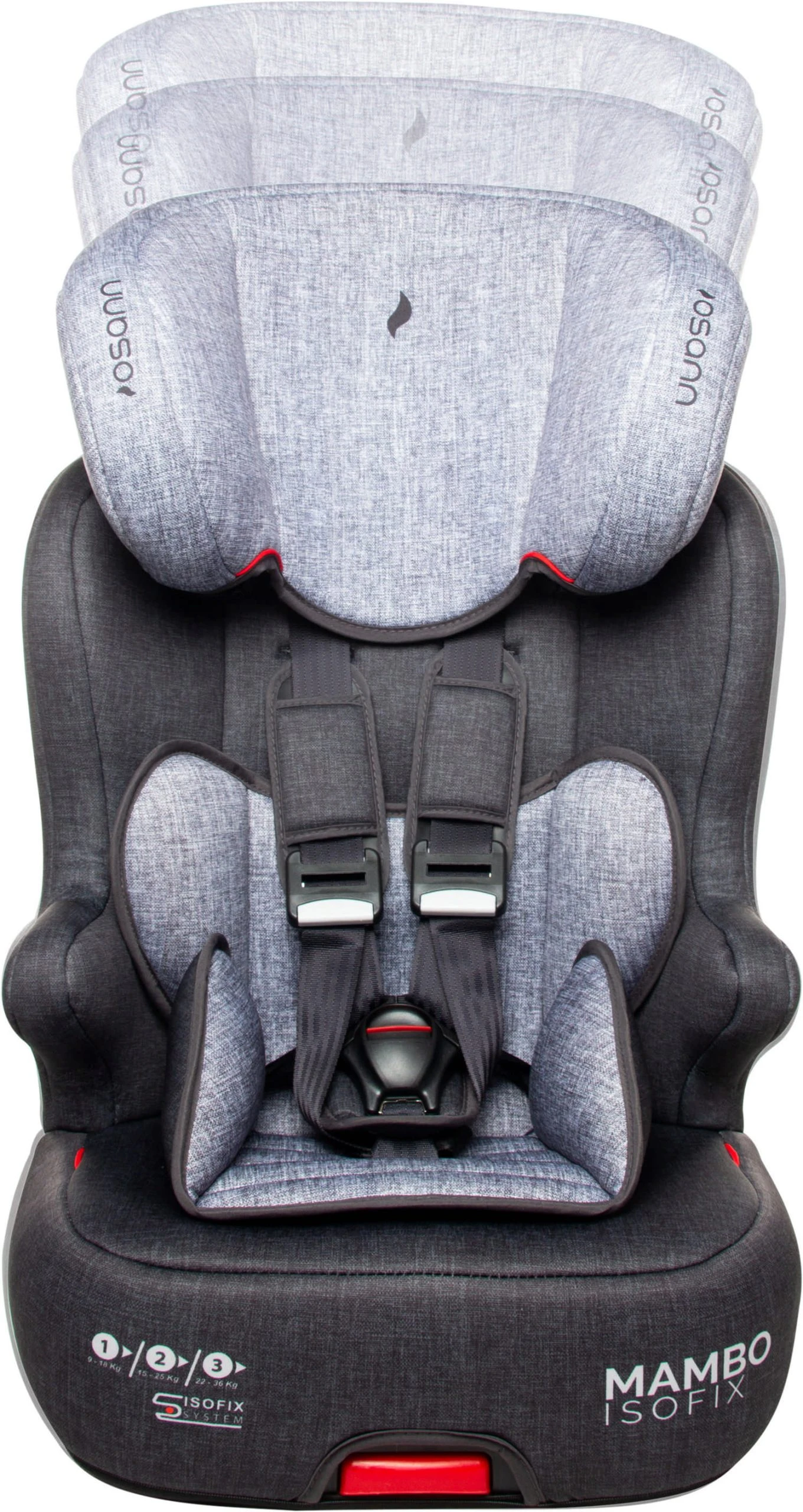 Der zuverlässige Mambo Isofix Kindersitz von Osann ist zugelassen zum sicheren Transport im Auto bzw. auf Reisen und Urlauben für Ihre Babys ab 9 kg und Kinder bis 36 kg. Wir empfehlen die Verwendung ab dem Alter von 18 Monaten. Dank des optimierten Seitenaufprallschutzes, der komfortablen Armlehnen und der 3-fach justierbaren Kopfstütze ist Ihr Nachwuchs mit dem Sitz immer optimal geschützt. Polster an Gurt und Schloss, die herausnehmbare Komforteinlage sowie die Möglichkeit der Ruheposition bietet den Kleinen immer das höchste Wohlempfinden. Der Isofix-Kindersitz hat ein 3-fach höhenverstellbares Gurtsystem, so wächst der Autositz mit den Jungen und Mädchen mit. Mit dem mitwachsenden Kindersitz sparen Sie sich die regelmäßige Anschaffung neuer Kinderautositze. Durch die individuell verstellbaren Isofix-Konnektoren passt sich die hochwertige Babyschale dem Sitz des Autos an und kann so einfach und korrekt eingebaut werden.