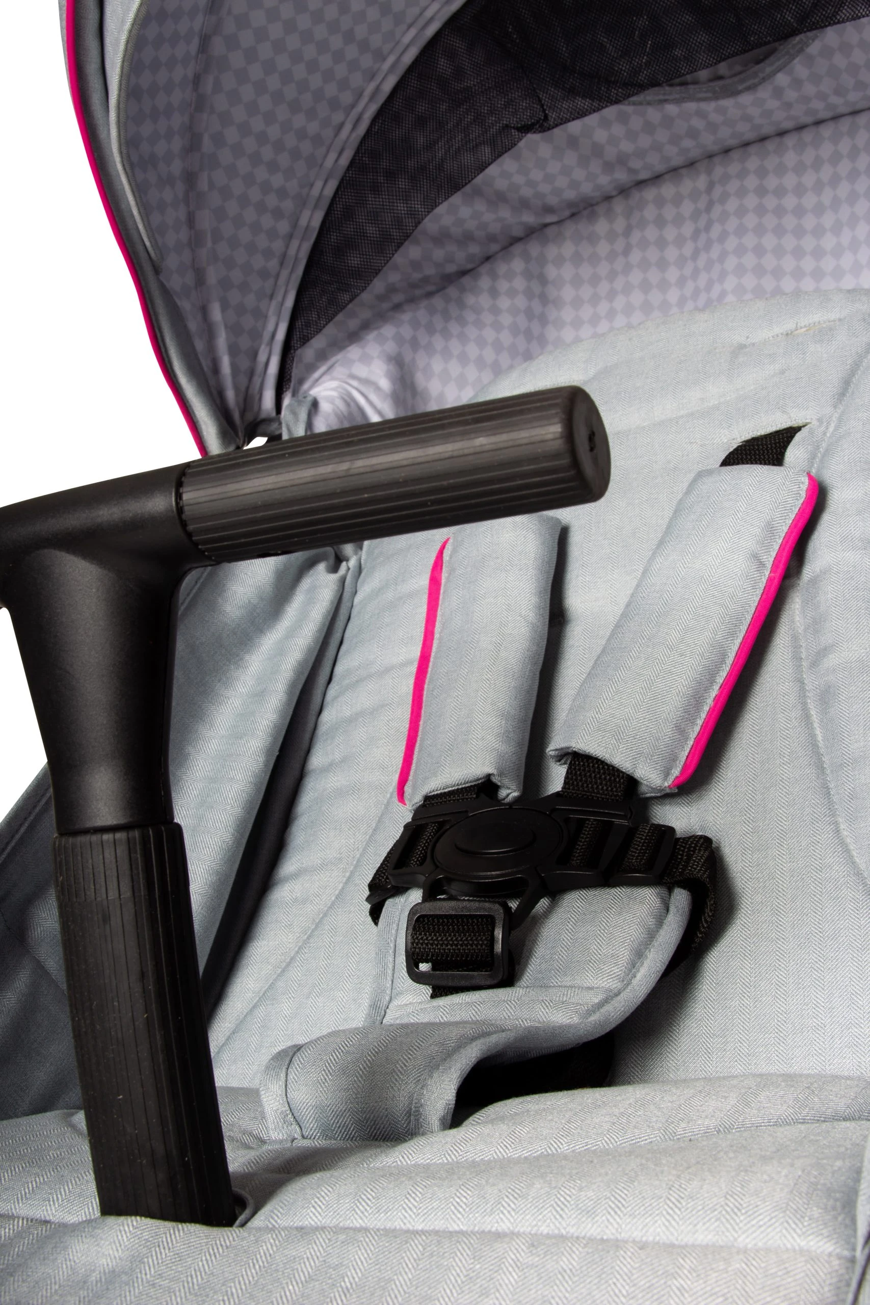 SICHER: Der Sarah Harrison Buggy-Kindewagen sorgt mit einem 5-Punkt-Gurt und einem Schutzbügel für Sicherheit während der Spazierfahrt. Eine weiche Polsterung sowie eine Fußablage bieten zusätzlichen Komfort