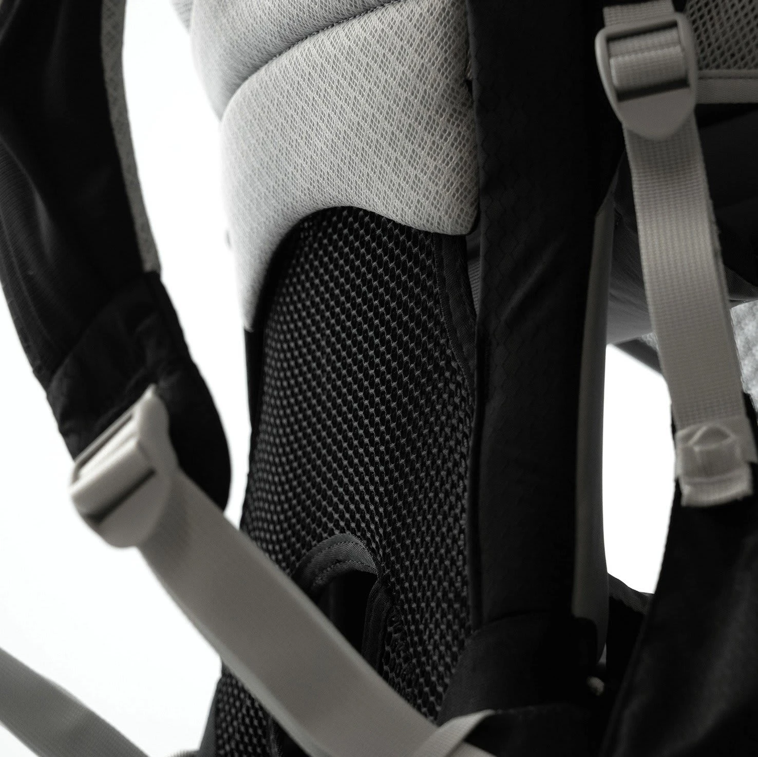 gespannte Mesh im Rückensystem und im Bereich des Kindersitzes sehr gute