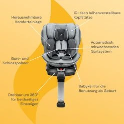 – Befestigung im Auto: Surefix (Isofix) oder 3-Punkt-Gurt