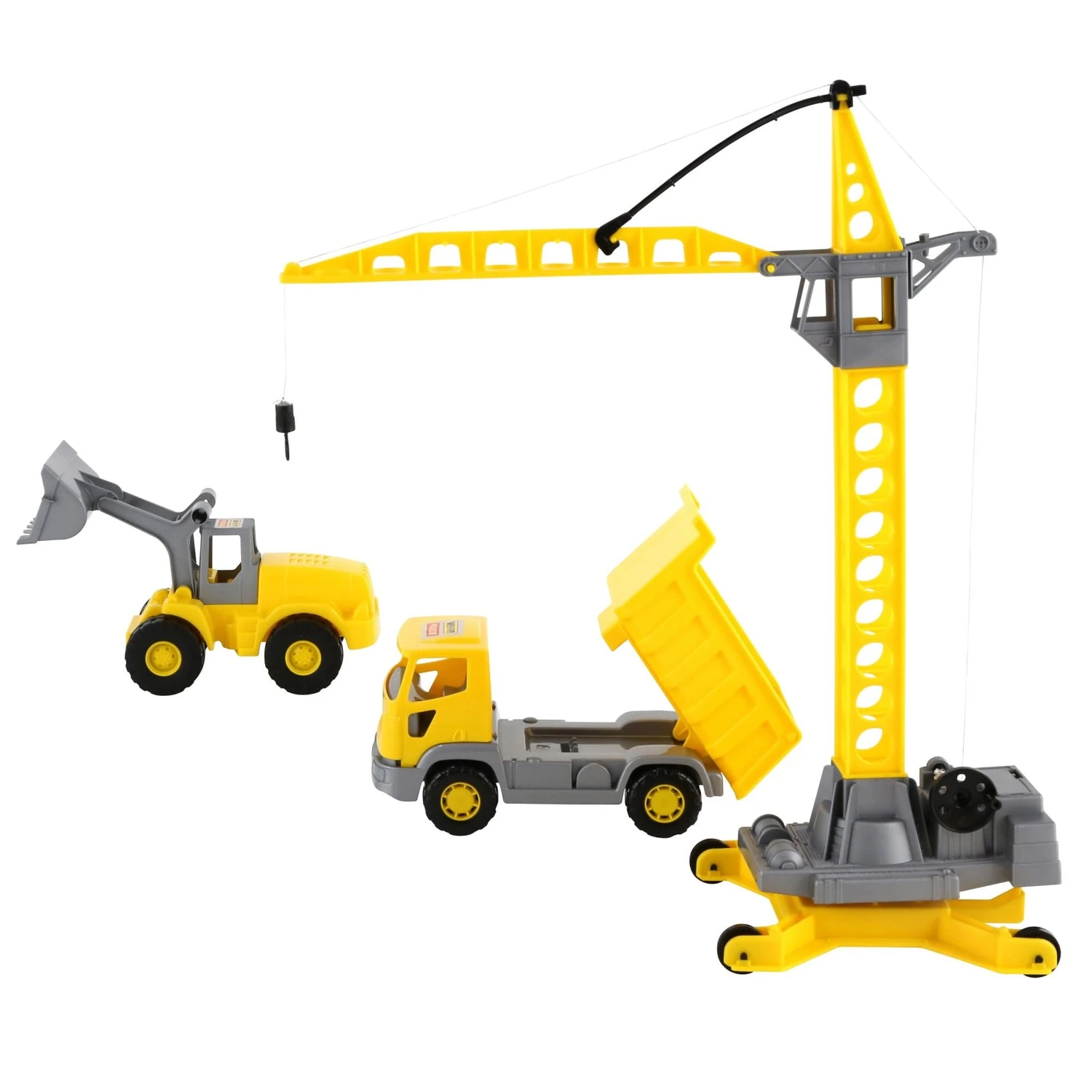 Besonderheiten Artikel Polesie 57150 Baumaschinen 3-er Set, Kran, Radlader, LKW, Kunststoff, ab 3 Jahre