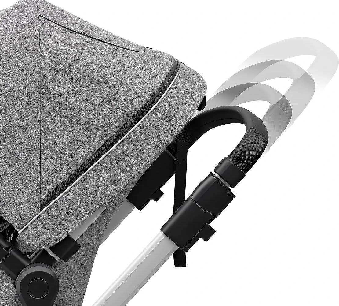 Zu dem weiteren Zubehör gehören ein großer Gepäckkorb mit Reißverschluss, in dem Sie Einkäufe und vieles mehr verstauen können, sowie ein praktischer Haken für die Wickeltasche. Besonders toll ist außerdem der höhenverstellbare Schiebebügel, sodass die Höhe des Schiebers flexibel auf Sie abgestimmt wird.